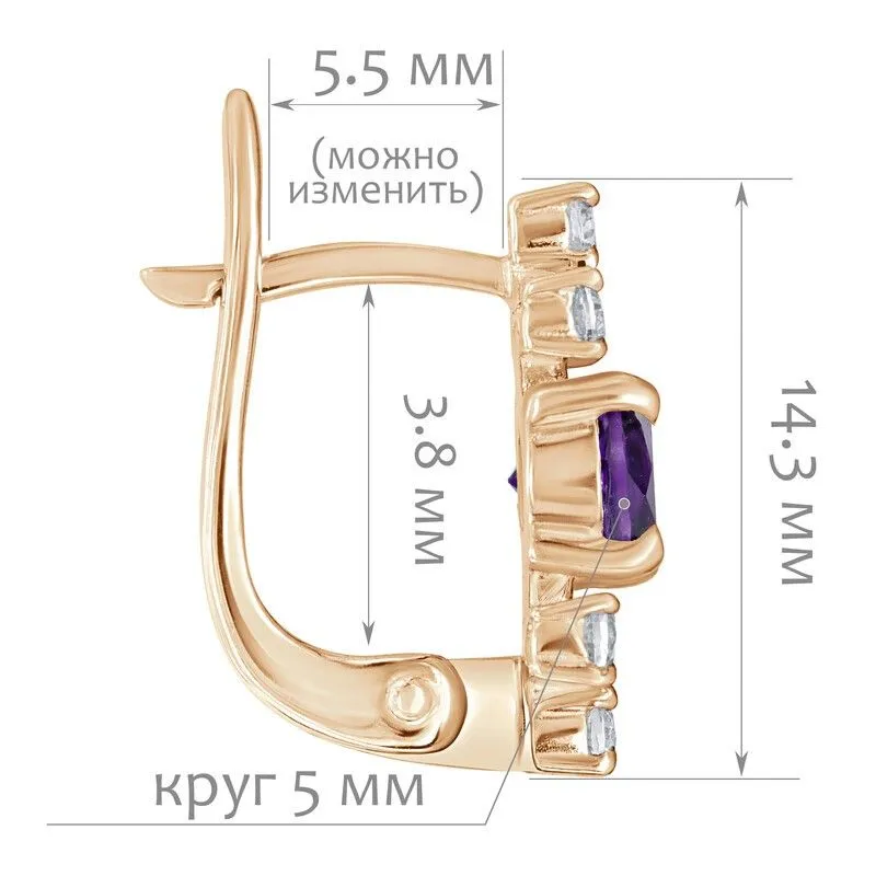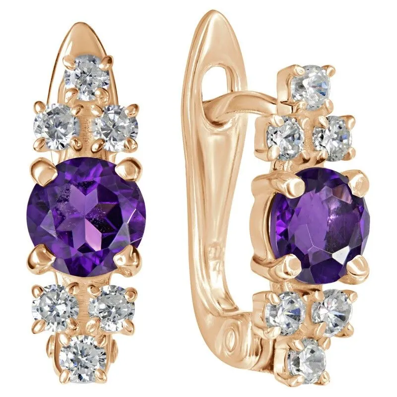 Серебряные серьги с натуральным аметистом (темный) - коллекция Нова / покрытие Розовое Золото.Средний вес украшения с камнями 2.5 гр.Месторождение(я): Аметист (Приполярный Урал, Россия).Ювелирные вставки:Аметист (Натуральный) круг 5 мм., средний вес: 0.48 карат.Белый Нанокристалл круг 2 мм., средний вес: 0.06 карат.Все изделия собственного производства и имеют гарантию 12 месяцев. Арт. 8705PG .