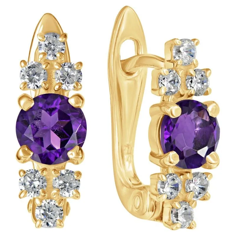 Серебряные серьги с натуральным аметистом (темный) - коллекция Нова / покрытие Желтое Золото.Средний вес украшения с камнями 2.57 гр.Месторождение(я): Аметист (Приполярный Урал, Россия).Ювелирные вставки:Аметист (Натуральный) круг 5 мм., средний вес: 0.48 карат.Белый Нанокристалл круг 2 мм., средний вес: 0.06 карат.Все изделия собственного производства и имеют гарантию 12 месяцев. Арт. 8705YG .