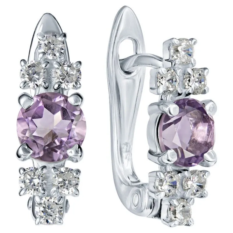 Серебряные серьги с натуральным аметистом (светлый) - коллекция Нова / покрытие Чистое Серебро.Средний вес украшения с камнями 2.62 гр.Месторождение(я): Аметист (Приполярный Урал, Россия).Ювелирные вставки:Аметист (Натуральный) круг 5 мм., средний вес: 0.48 карат.Белый Нанокристалл круг 2 мм., средний вес: 0.06 карат.Все изделия собственного производства и имеют гарантию 12 месяцев. Арт. 8706AG .