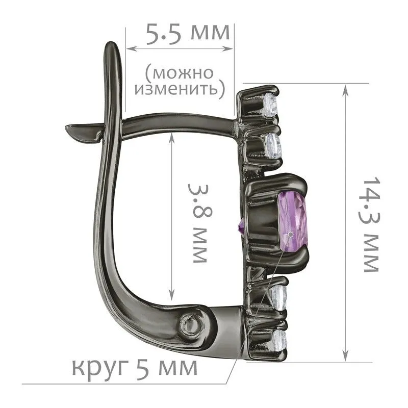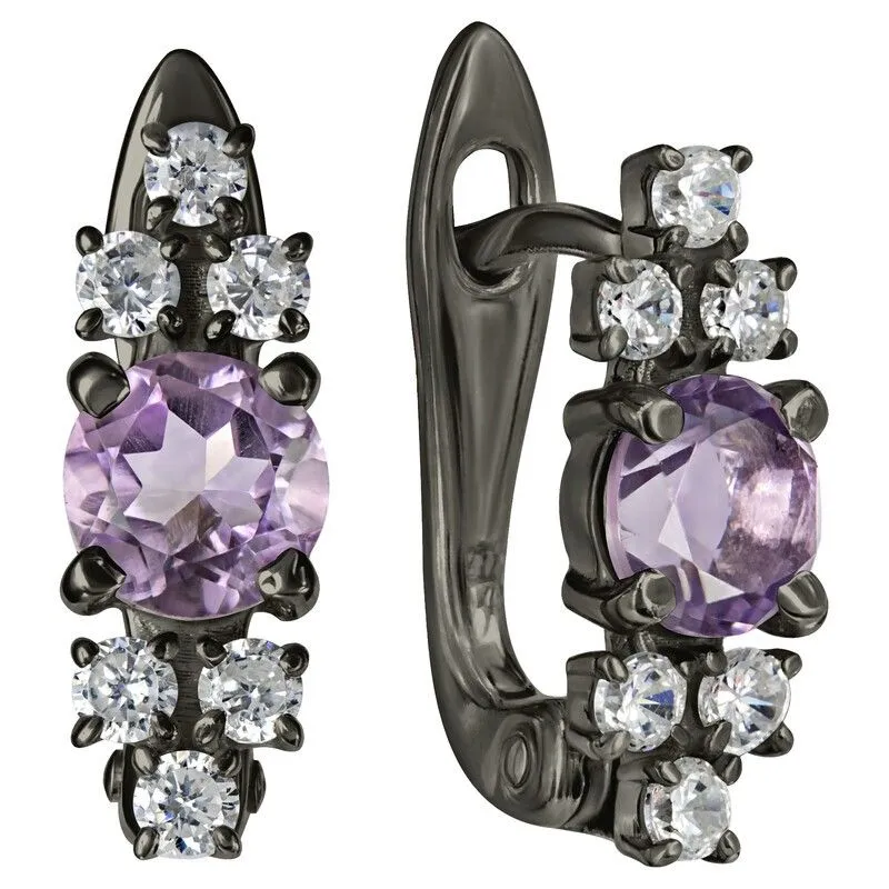 Серебряные серьги с натуральным аметистом (светлый) - коллекция Нова / покрытие Черный Родий.Средний вес украшения с камнями 2.48 гр.Месторождение(я): Аметист (Приполярный Урал, Россия).Ювелирные вставки:Аметист (Натуральный) круг 5 мм., средний вес: 0.48 карат.Белый Нанокристалл круг 2 мм., средний вес: 0.06 карат.Все изделия собственного производства и имеют гарантию 12 месяцев. Арт. 8706BR .
