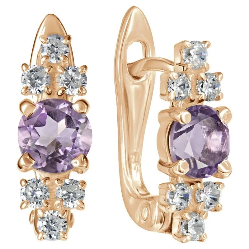Серебряные серьги с натуральным аметистом (светлый) - коллекция Нова / покрытие Розовое Золото.Средний вес украшения с камнями 2.53 гр.Месторождение(я): Аметист (Приполярный Урал, Россия).Ювелирные вставки:Аметист (Натуральный) круг 5 мм., средний вес: 0.48 карат.Белый Нанокристалл круг 2 мм., средний вес: 0.06 карат.Все изделия собственного производства и имеют гарантию 12 месяцев. Арт. 8706PG .