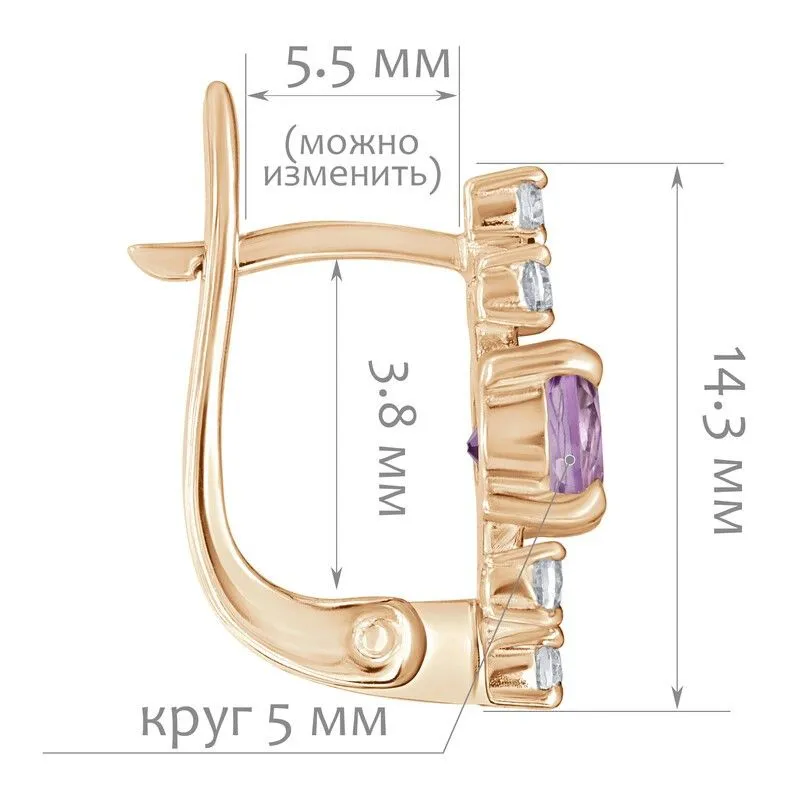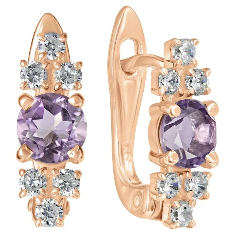 Серебряные серьги с натуральным аметистом (светлый) - коллекция Нова / покрытие Красное Золото.Средний вес украшения с камнями 2.48 гр.Месторождение(я): Аметист (Приполярный Урал, Россия).Ювелирные вставки:Аметист (Натуральный) круг 5 мм., средний вес: 0.48 карат.Белый Нанокристалл круг 2 мм., средний вес: 0.06 карат.Все изделия собственного производства и имеют гарантию 12 месяцев. Арт. 8706RG .