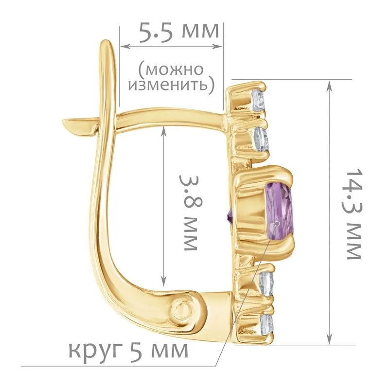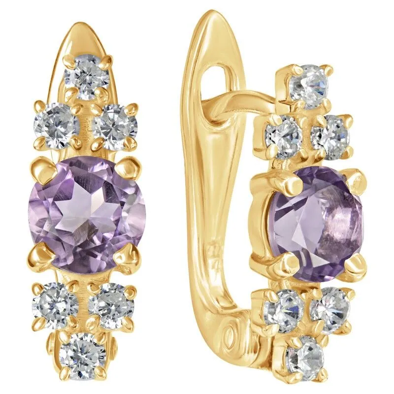 Серебряные серьги с натуральным аметистом (светлый) - коллекция Нова / покрытие Желтое Золото.Средний вес украшения с камнями 2.6 гр.Месторождение(я): Аметист (Приполярный Урал, Россия).Ювелирные вставки:Аметист (Натуральный) круг 5 мм., средний вес: 0.48 карат.Белый Нанокристалл круг 2 мм., средний вес: 0.06 карат.Все изделия собственного производства и имеют гарантию 12 месяцев. Арт. 8706YG .