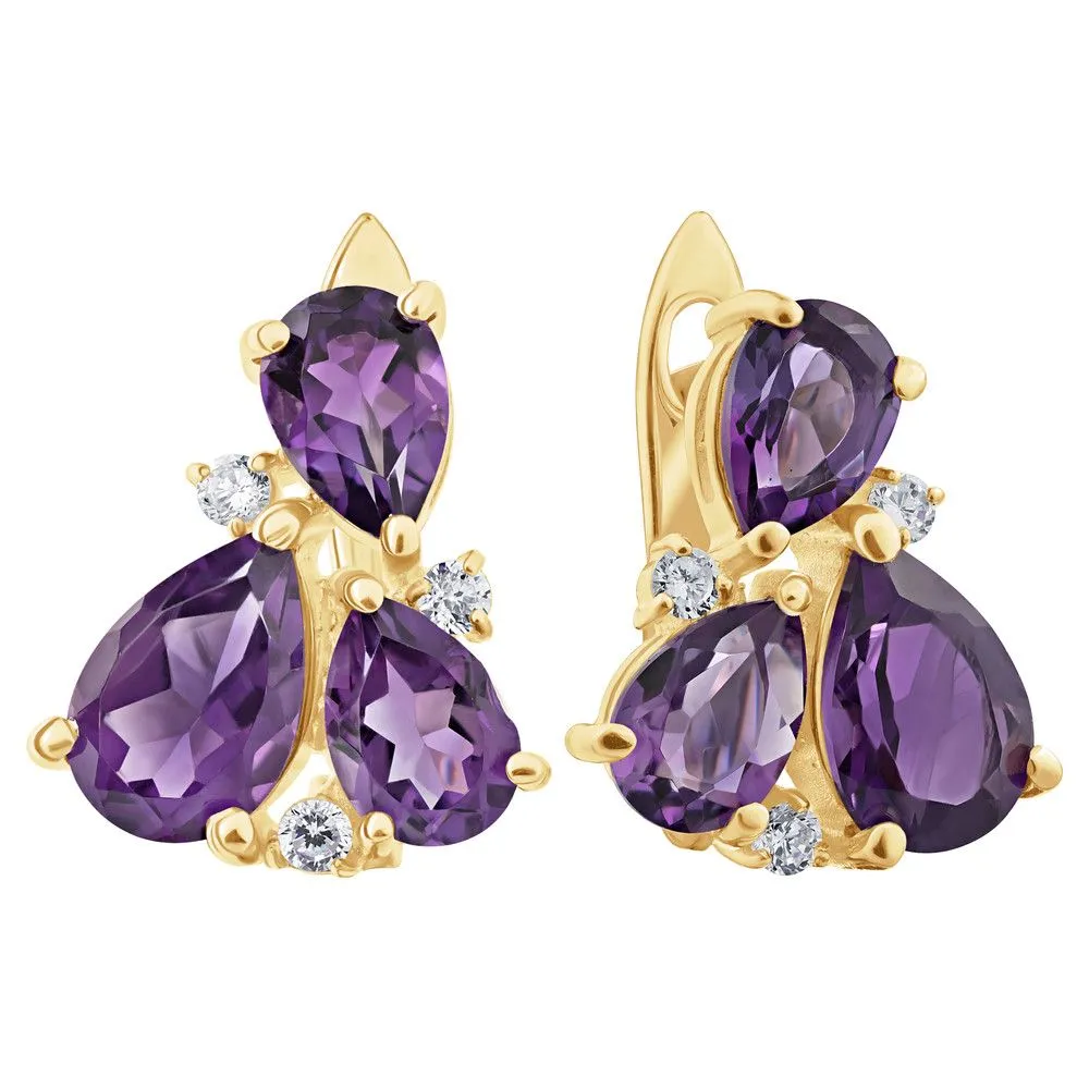 Серебряные серьги с натуральным аметистом (темным) - коллекция Капель / покрытие Желтое Золото. Средний вес украшения с камнями 5.83 гр. Месторождение: Аметист (Приполярный Урал, Россия) Ювелирные вставки: Аметист (Натуральный) груша 6*9 мм., средний вес: 1.24 карат. Аметист (Натуральный) груша 5*7 мм., средний вес: 0.65 карат. Все изделия собственного производства и имеют гарантию 12 месяцев. Арт. 8766YG .