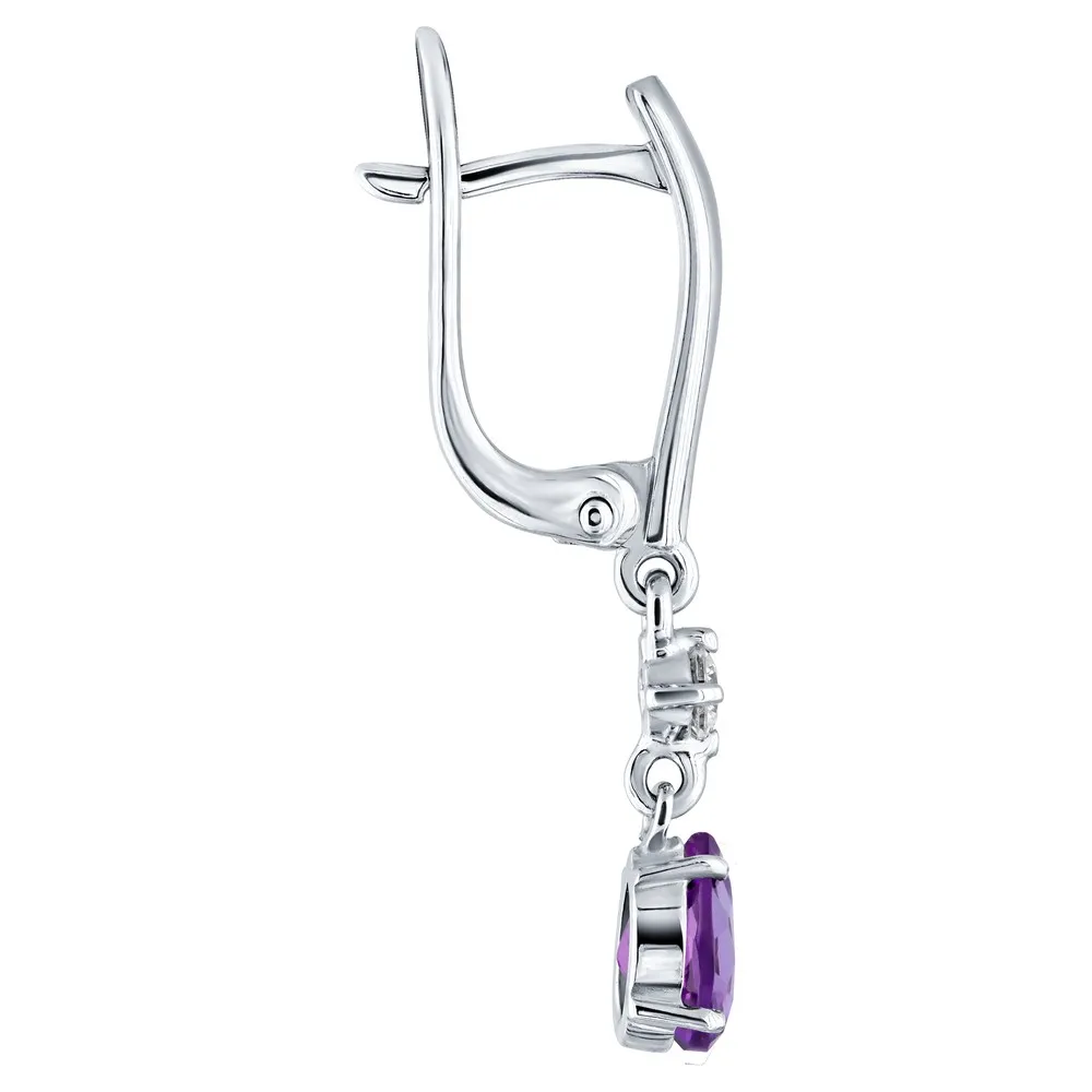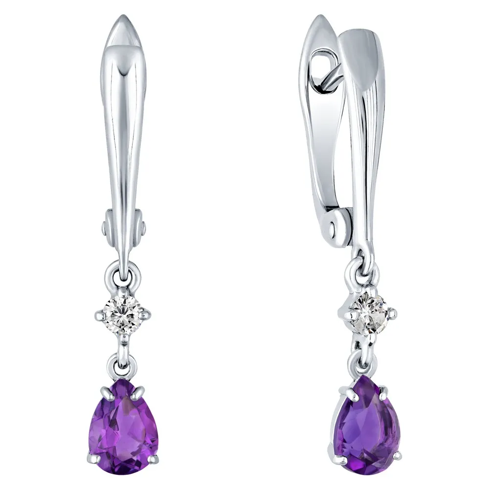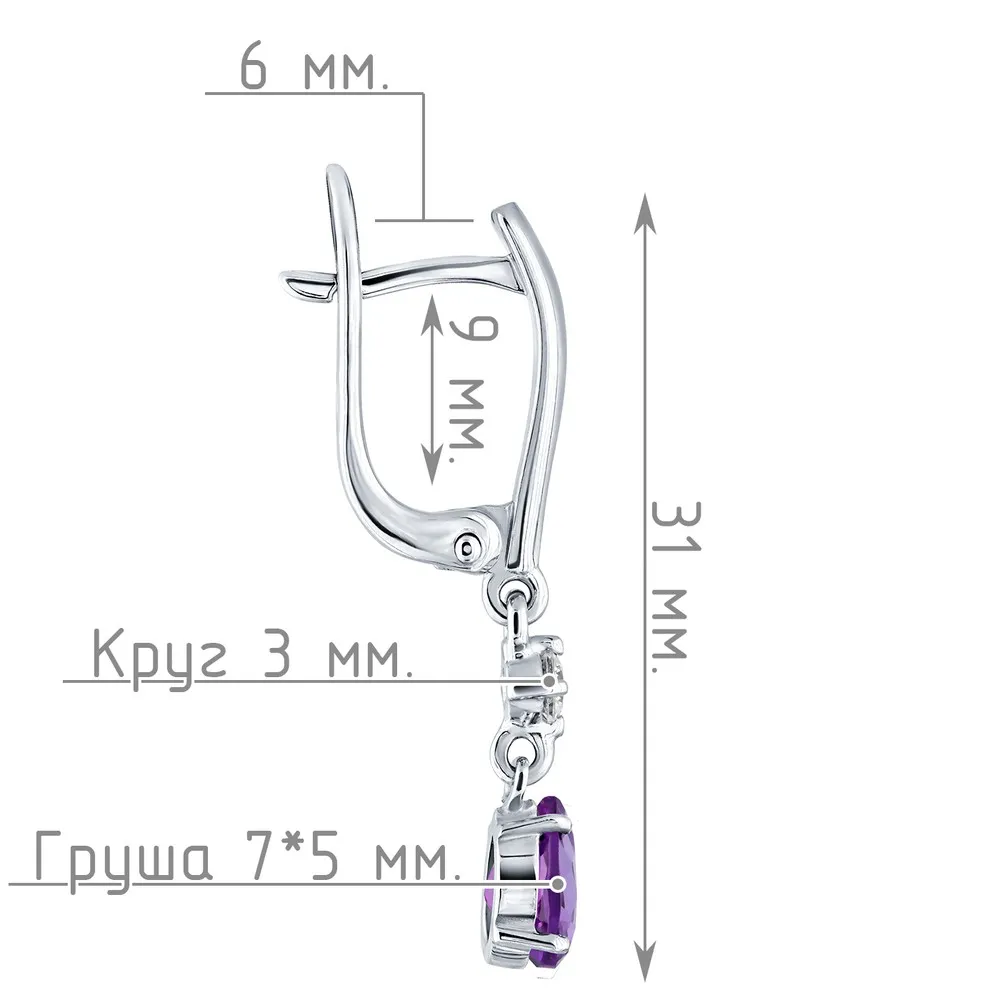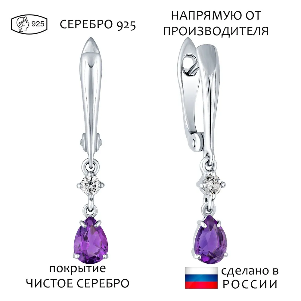 Серебряные серьги с натуральным аметистом (темным) - коллекция Алсу (малая) / Чистое Серебро.