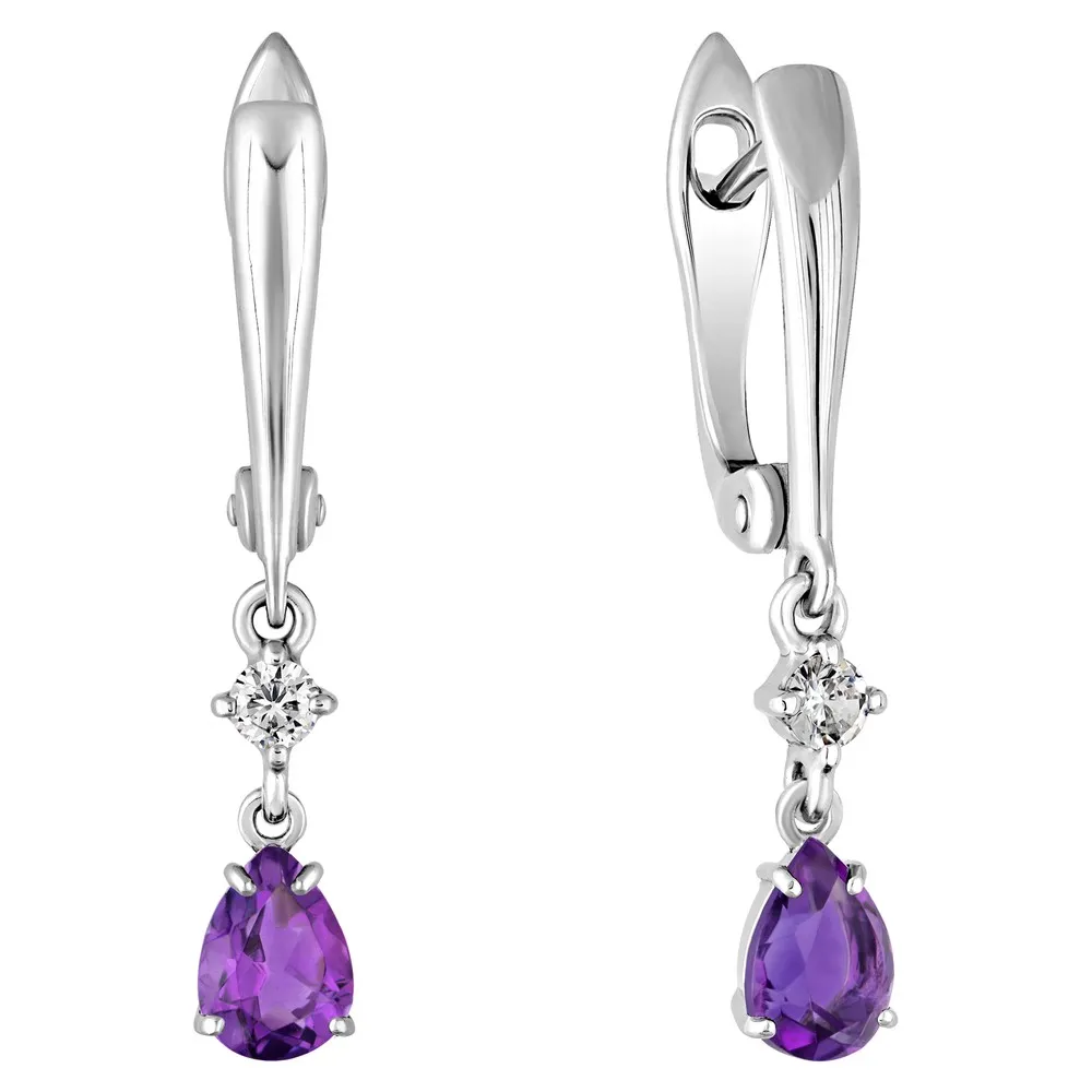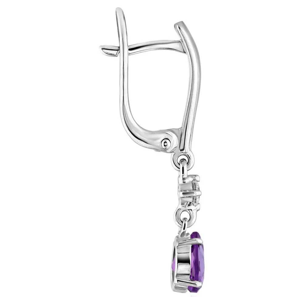 Серебряные серьги с натуральным аметистом (темным) - коллекция Алсу (малая) / Без покрытия.
