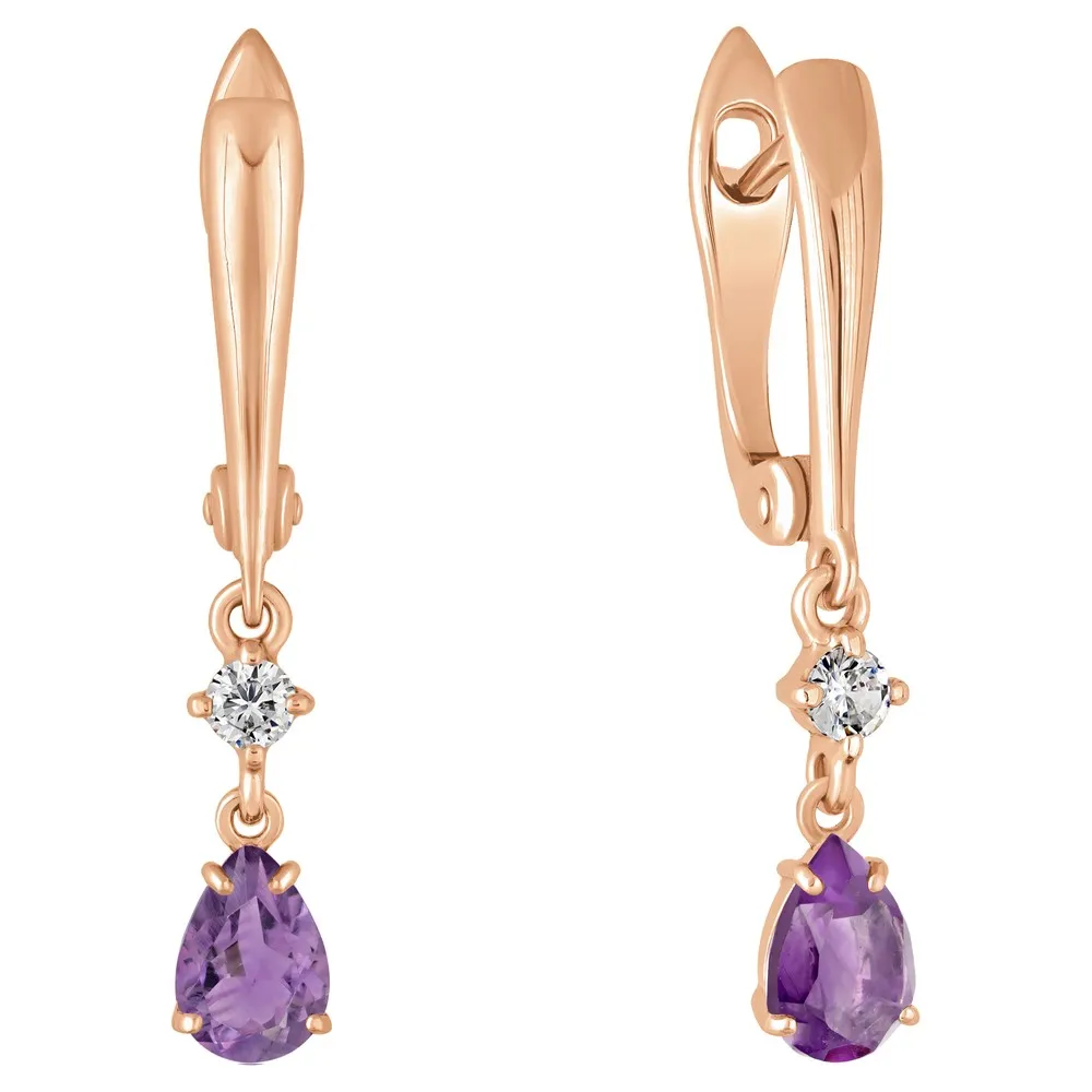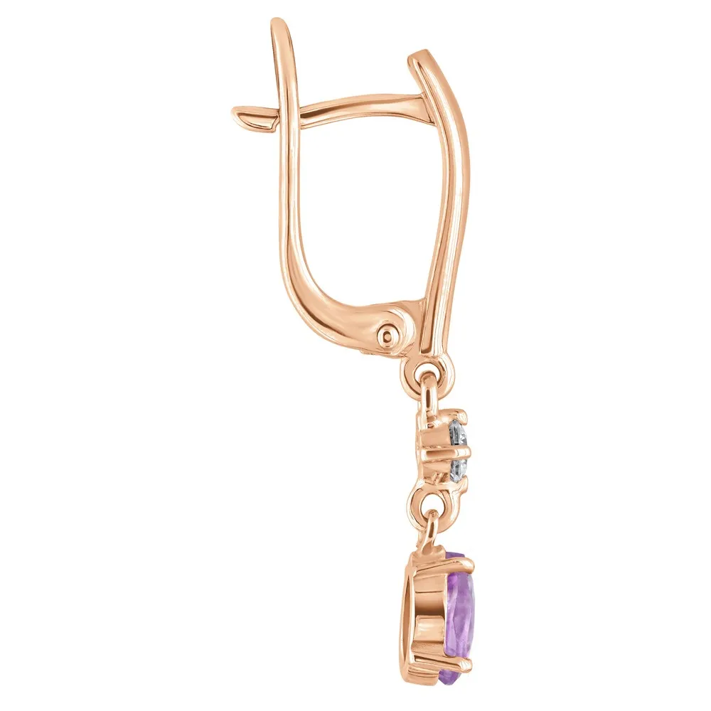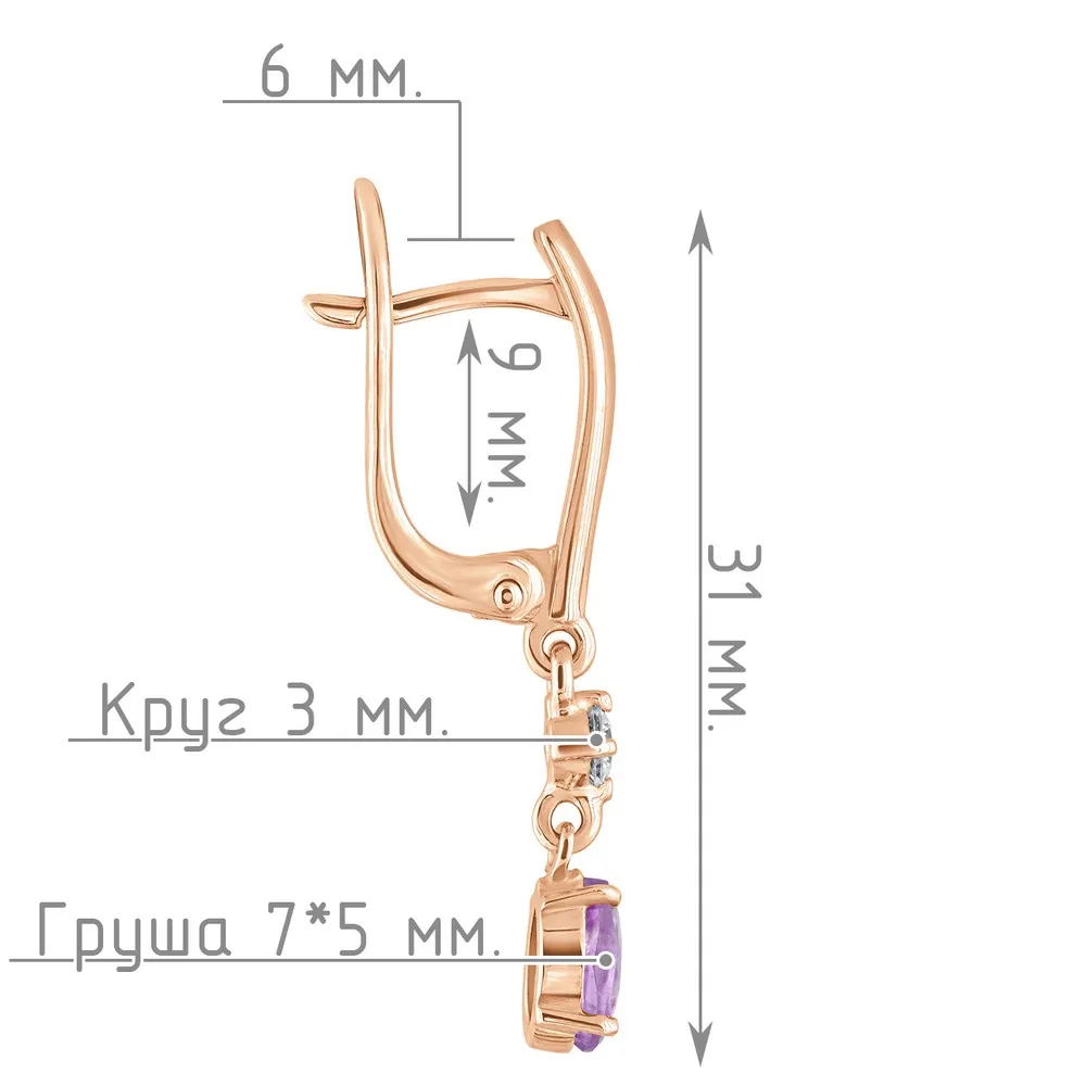 Серебряные серьги с натуральным аметистом (светлым) - коллекция Алсу (малая) / Красное золото.