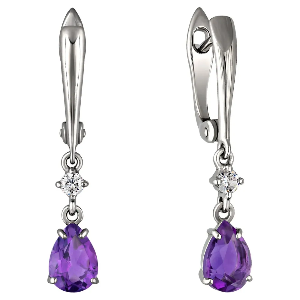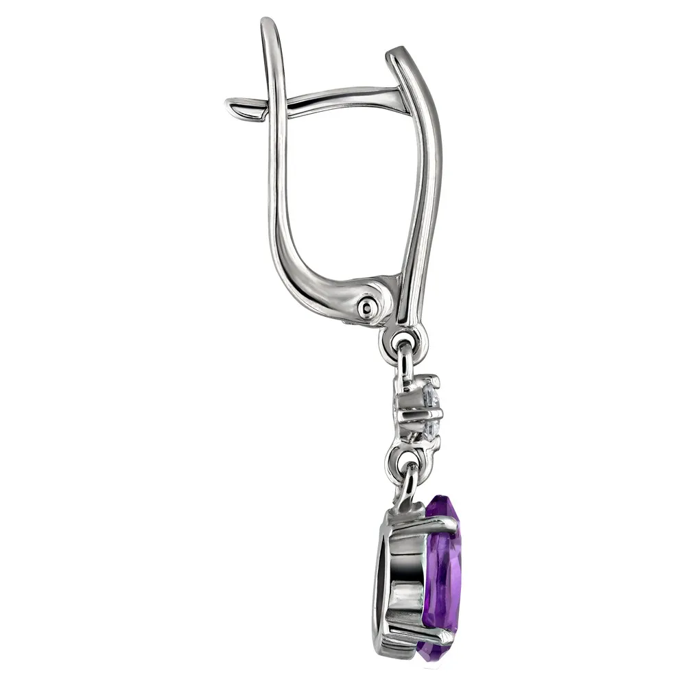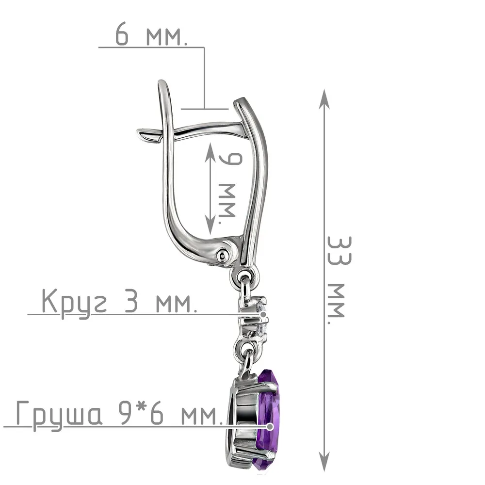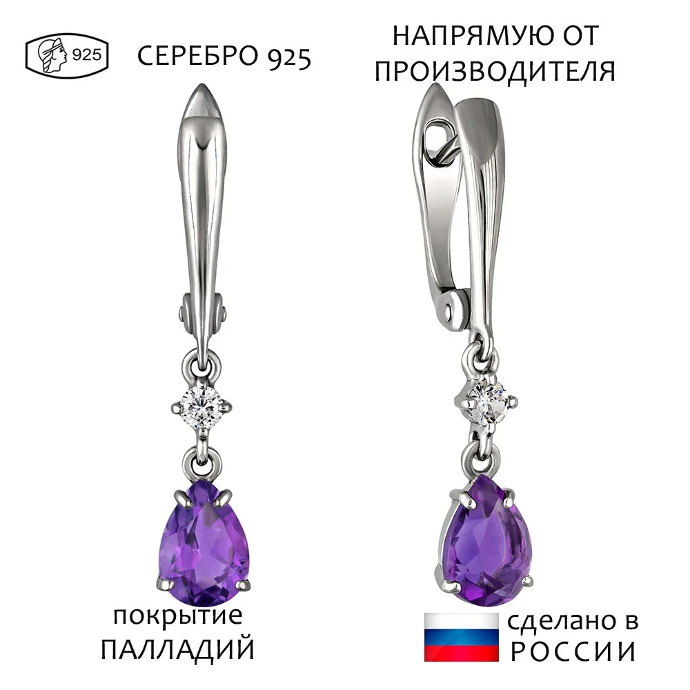 Серебряные серьги с натуральным аметистом (темным) - коллекция Алсу (большая) / Палладий.