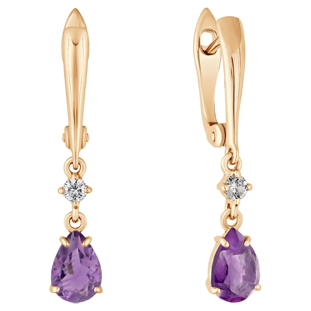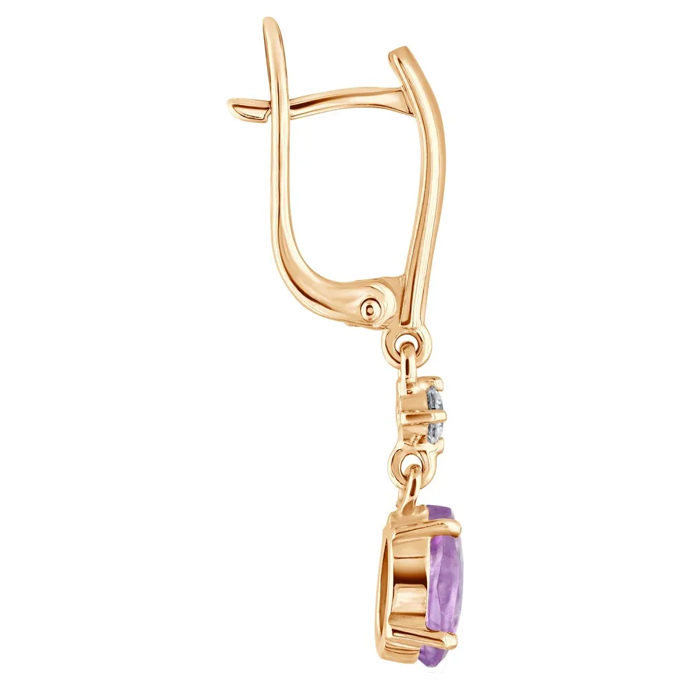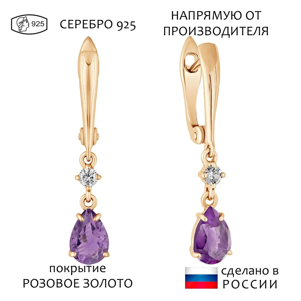 Серебряные серьги с натуральным аметистом (светлым) - коллекция Алсу (большая) / Розовое Золото.