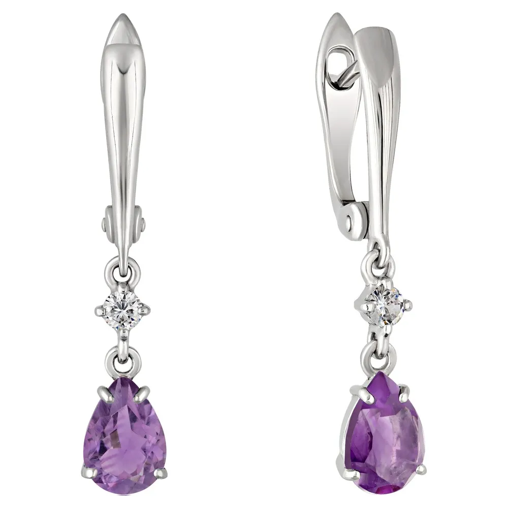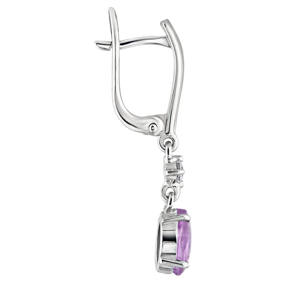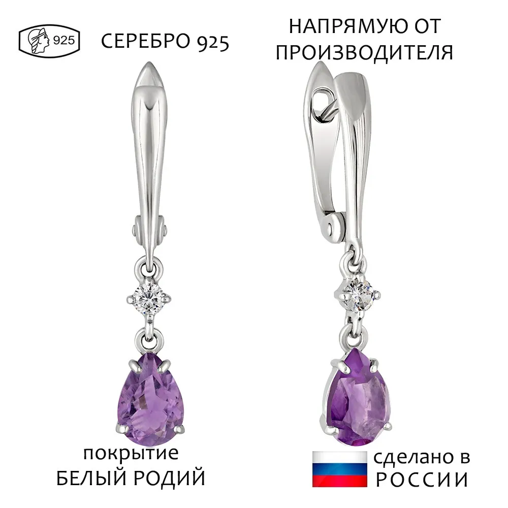 Серебряные серьги с натуральным аметистом (светлым) - коллекция Алсу (большая) / Белый Родий.