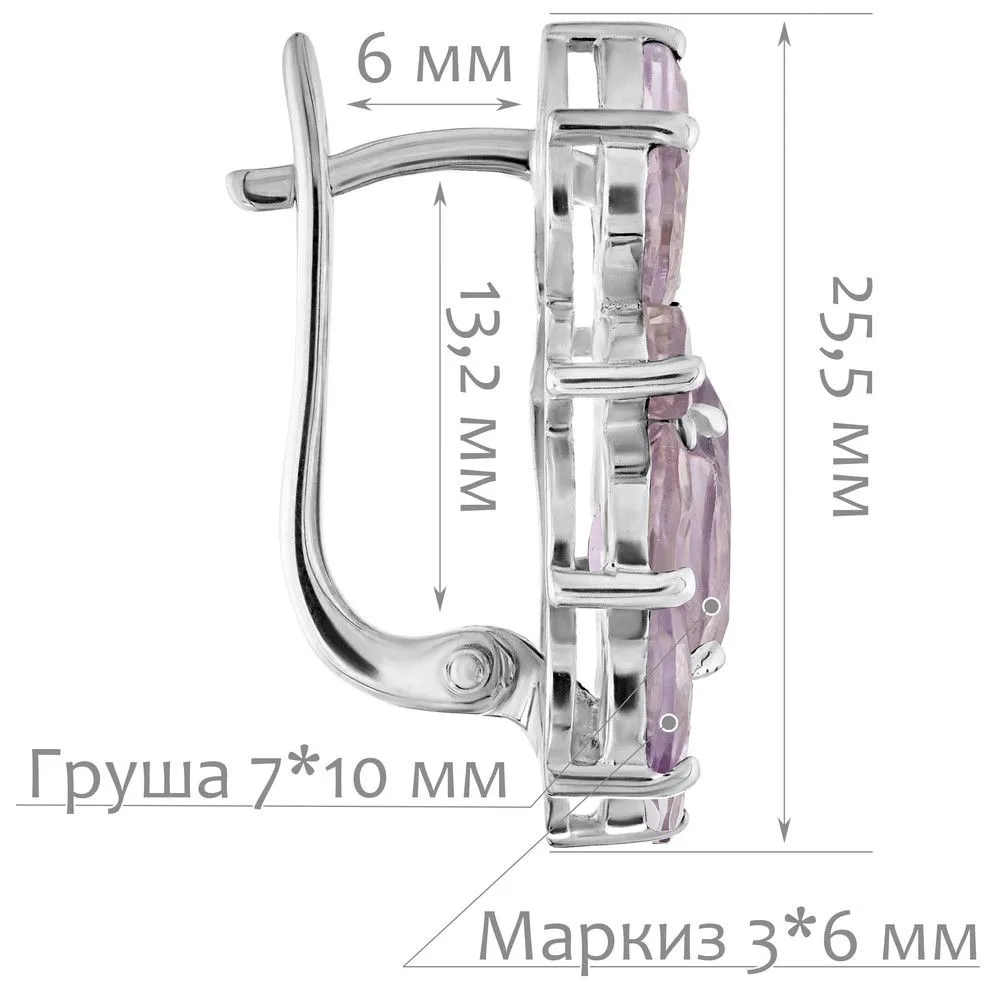 Серебряные серьги Элегия с натуральным аметистом, без покрытия. Средний вес украшения с камнями 6,99 гр. Месторождение(я) камней: Аметист (Приполярный Урал, Россия). Аметист (Натуральный) груша: 7*10 мм., средний вес: 1,77 карат. Аметист (Натуральный) маркиз: 3*6 мм., средний вес: 0,22 карат. Размер лицевой части: 15*24 мм. Все изделия собственного производства и имеют гарантию 12 месяцев. Арт. 6656. NP . Аметист — прозрачный или полупрозрачный камень фиолетовых оттенков, подвид кварца. Он гармонизирует разум, снимает стресс, улучшает кровообращение, способствует умственному развитию и личностному росту. Считается, что он также оберегает от головной боли и бессонницы, служит противоядием, помогает избавиться от алкоголизма и наделяет владельца проницательностью, раскрывая «третий глаз» (за который отвечает чакра аджна). В медитации помогает расслабиться и успокоиться. Положенный под подушку, аметист приносит хорошие сны.