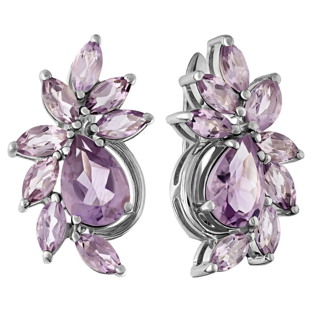 Серебряные серьги Элегия с натуральным аметистом, покрытие Палладий. Средний вес украшения с камнями 6,99 гр. Месторождение(я) камней: Аметист (Приполярный Урал, Россия). Аметист (Натуральный) груша: 7*10 мм., средний вес: 1,77 карат. Аметист (Натуральный) маркиз: 3*6 мм., средний вес: 0,22 карат. Размер лицевой части: 15*24 мм. Все изделия собственного производства и имеют гарантию 12 месяцев. Арт. 6656. PD . Аметист — прозрачный или полупрозрачный камень фиолетовых оттенков, подвид кварца. Он гармонизирует разум, снимает стресс, улучшает кровообращение, способствует умственному развитию и личностному росту. Считается, что он также оберегает от головной боли и бессонницы, служит противоядием, помогает избавиться от алкоголизма и наделяет владельца проницательностью, раскрывая «третий глаз» (за который отвечает чакра аджна). В медитации помогает расслабиться и успокоиться. Положенный под подушку, аметист приносит хорошие сны.