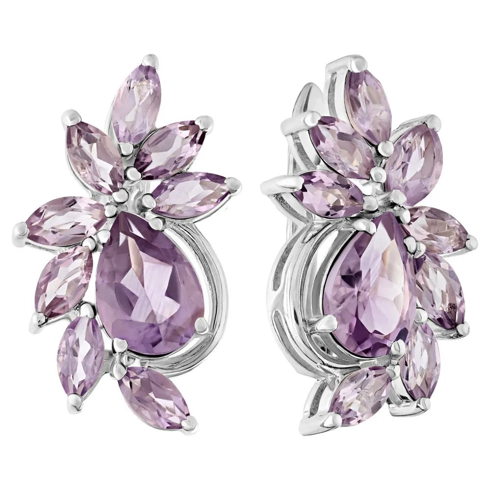 Серебряные серьги Элегия с натуральным аметистом, покрытие Белый Родий. Средний вес украшения с камнями 6,99 гр. Месторождение(я) камней: Аметист (Приполярный Урал, Россия). Аметист (Натуральный) груша: 7*10 мм., средний вес: 1,77 карат. Аметист (Натуральный) маркиз: 3*6 мм., средний вес: 0,22 карат. Размер лицевой части: 15*24 мм. Все изделия собственного производства и имеют гарантию 12 месяцев. Арт. 6656 WR . Аметист — прозрачный или полупрозрачный камень фиолетовых оттенков, подвид кварца. Он гармонизирует разум, снимает стресс, улучшает кровообращение, способствует умственному развитию и личностному росту. Считается, что он также оберегает от головной боли и бессонницы, служит противоядием, помогает избавиться от алкоголизма и наделяет владельца проницательностью, раскрывая «третий глаз» (за который отвечает чакра аджна). В медитации помогает расслабиться и успокоиться. Положенный под подушку, аметист приносит хорошие сны.