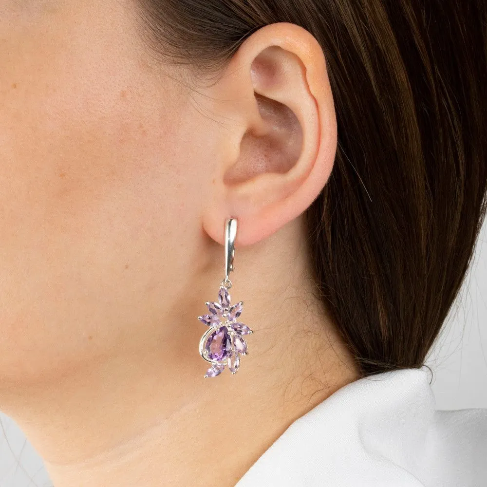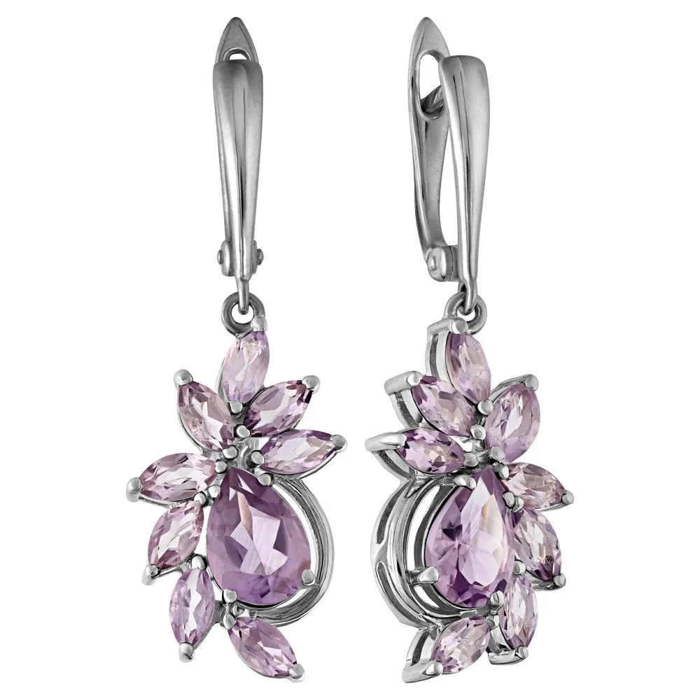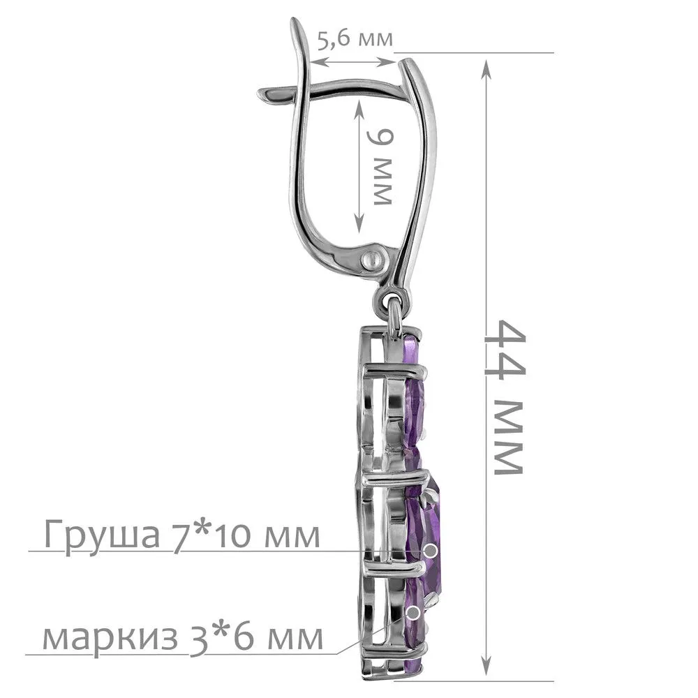 Серебряные серьги Элегия с натуральным аметистом. Месторождение(я) камней: Аметист (Приполярный Урал, Россия), покрытие Палладий. Средний вес украшения с камнями 7,53 гр. Аметист (Натуральный) груша: 7*10 мм., средний вес: 1,77 карат. Аметист (Натуральный) маркиз: 3*6 мм., средний вес: 0,22 карат. Размер лицевой части: 15*43 мм. Все изделия собственного производства и имеют гарантию 12 месяцев. Арт. 6657PD . Аметист — прозрачный или полупрозрачный камень фиолетовых оттенков, подвид кварца. Он гармонизирует разум, снимает стресс, улучшает кровообращение, способствует умственному развитию и личностному росту. Считается, что он также оберегает от головной боли и бессонницы, служит противоядием, помогает избавиться от алкоголизма и наделяет владельца проницательностью, раскрывая «третий глаз» (за который отвечает чакра аджна). В медитации помогает расслабиться и успокоиться. Положенный под подушку, аметист приносит хорошие сны.