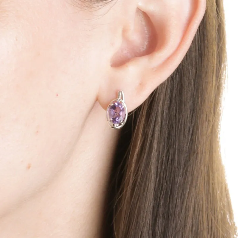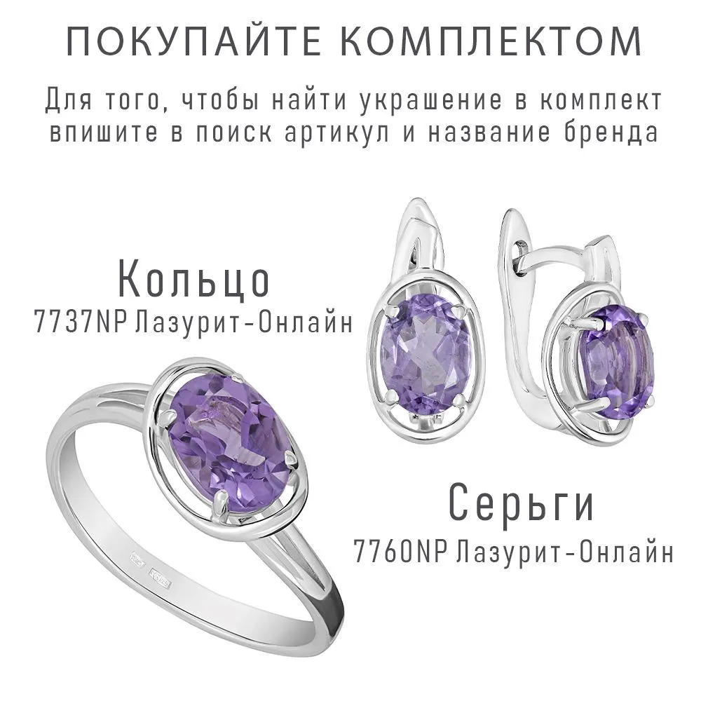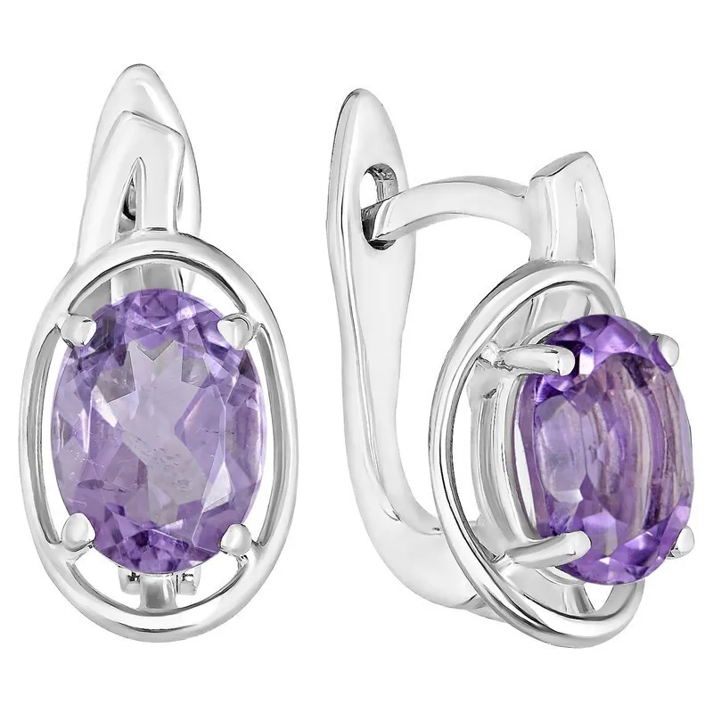 Серебряные серьги с натуральным аметистом - коллекция Фрейя. Средний вес изделия с камнем составляет 3.7 гр. Месторождение(я): Аметист (Приполярный Урал, Россия). Аметист (Натуральный) овал 6*8 мм., средний вес: 1.19 карат. Все изделия собственного производства. Гарантия 12 месяцев.Арт. 7760. Аметист — прозрачный или полупрозрачный камень фиолетовых оттенков, подвид кварца. Он гармонизирует разум, снимает стресс, улучшает кровообращение, способствует умственному развитию и личностному росту. Считается, что он также оберегает от головной боли и бессонницы, служит противоядием, помогает избавиться от алкоголизма и наделяет владельца проницательностью, раскрывая «третий глаз» (за который отвечает чакра аджна). В медитации помогает расслабиться и успокоиться. Положенный под подушку, аметист приносит хорошие сны.