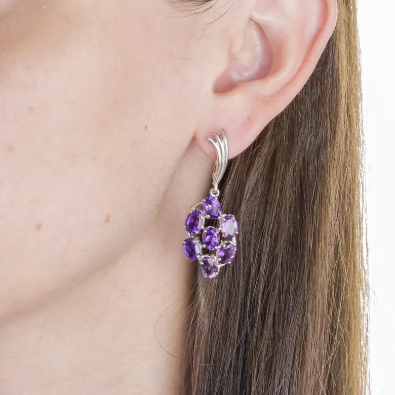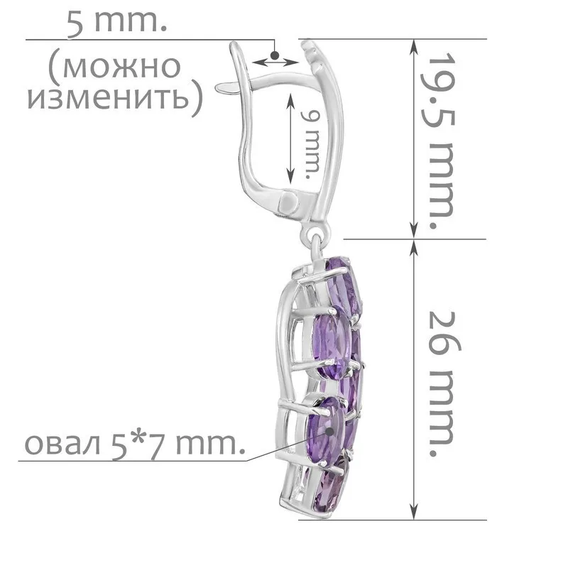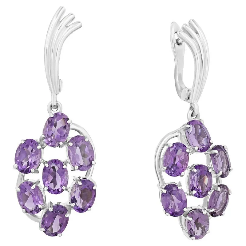 Серебряные серьги с натуральным аметистом - коллекция Аэлита. Средний вес изделия с камнями 9.85 гр. Месторождение: Аметист (Приполярный Урал, Россия). Аметист (Натуральный) овал 5*7 мм., средний вес: 0.81 карат. Все изделия собственного производства. Гарантия 12 месяцев.Арт. 7821. Аметист — прозрачный или полупрозрачный камень фиолетовых оттенков, подвид кварца. Он гармонизирует разум, снимает стресс, улучшает кровообращение, способствует умственному развитию и личностному росту. Считается, что он также оберегает от головной боли и бессонницы, служит противоядием, помогает избавиться от алкоголизма и наделяет владельца проницательностью, раскрывая «третий глаз» (за который отвечает чакра аджна). В медитации помогает расслабиться и успокоиться. Положенный под подушку, аметист приносит хорошие сны.