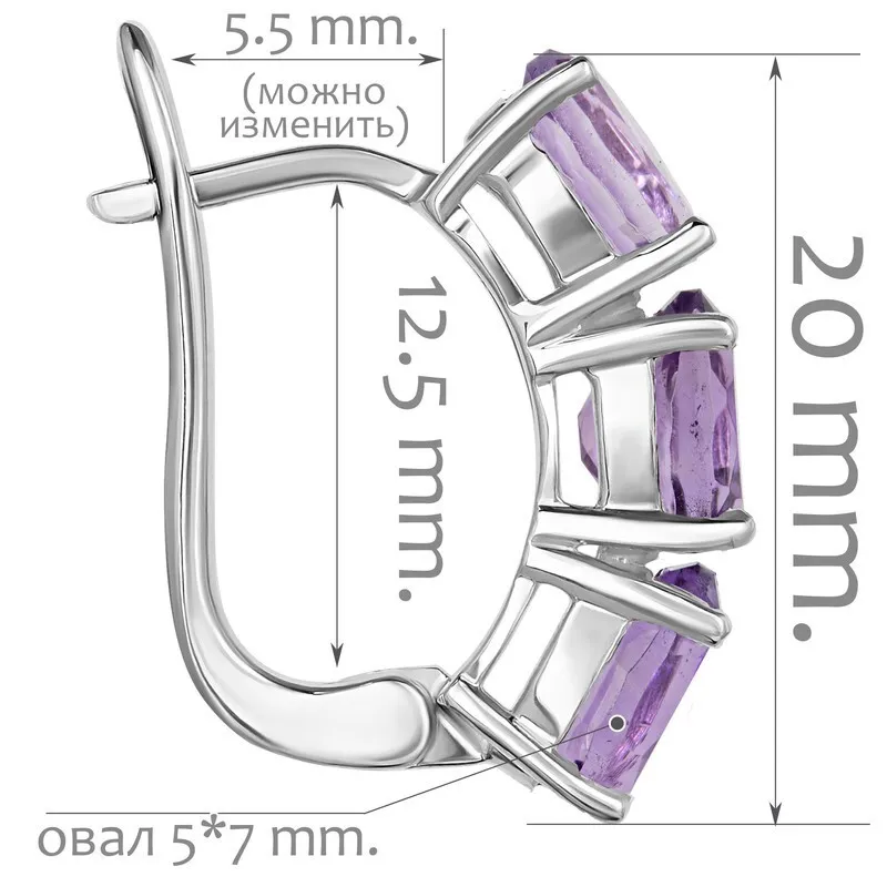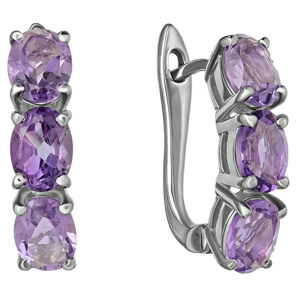 Серебряные серьги с натуральным аметистом (светлым) - коллекция Муза / покрытие Палладий