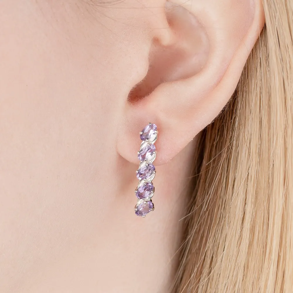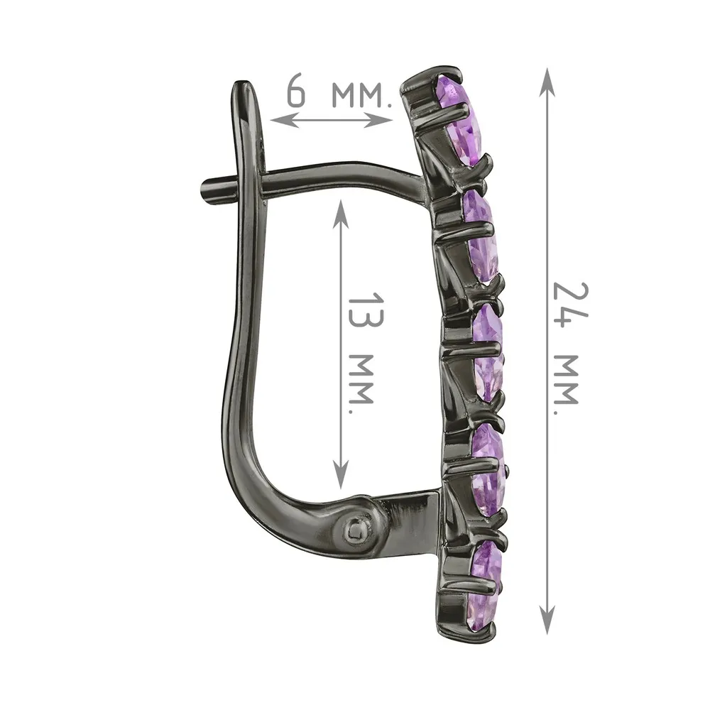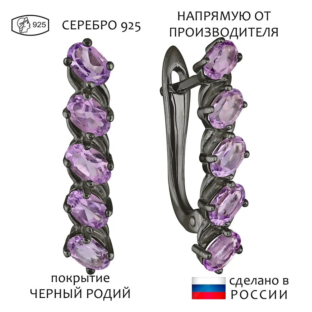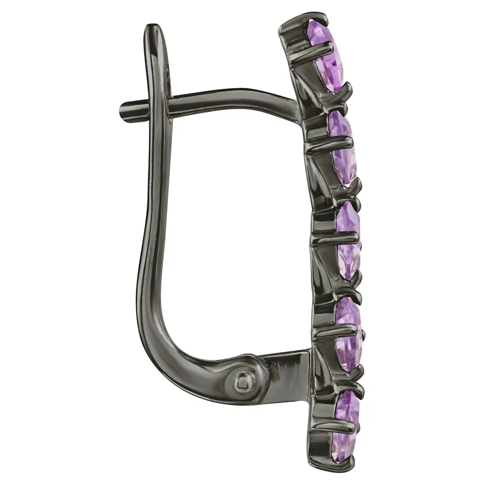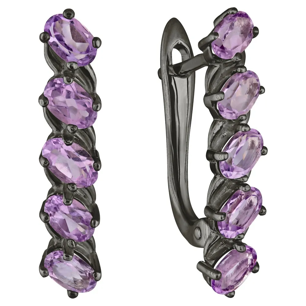 Серебряные серьги с натуральным аметистом - коллекция Колосок, покрытие Черный Родий.