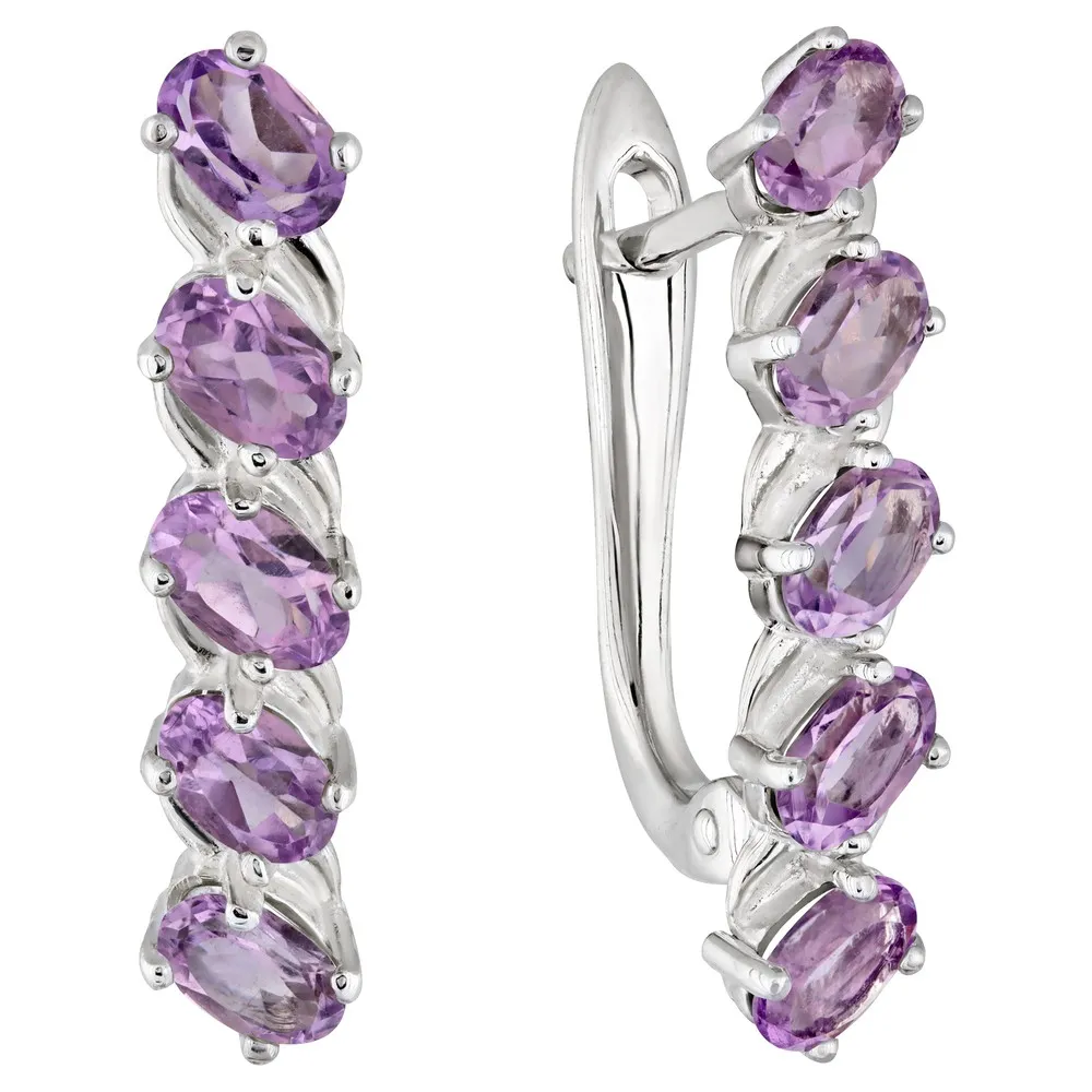 Серебряные серьги с натуральным аметистом (светлым) - коллекция Колосок / Без покрытия