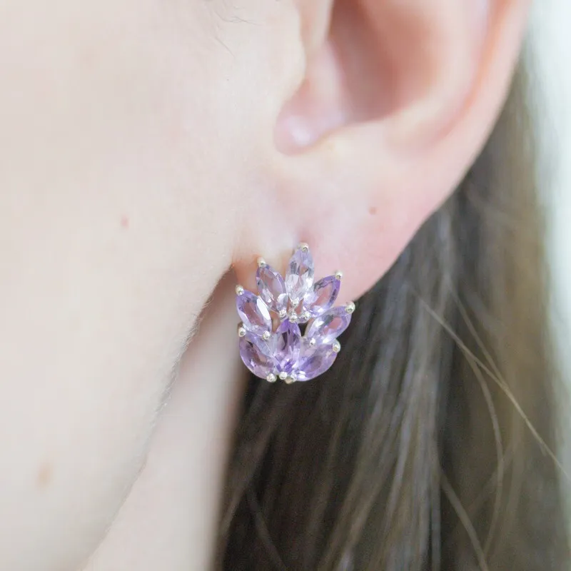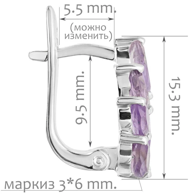 Серебряные серьги с натуральным аметистом - коллекция Искра. Средний вес изделия с камнями 4.35 гр. Месторождение: Аметист (Приполярный Урал, Россия) Аметист (Натуральный) маркиз 3*6 мм., средний вес: 0.23 карат. Все изделия собственного производства. Гарантия 12 месяцев.Арт. 8145.