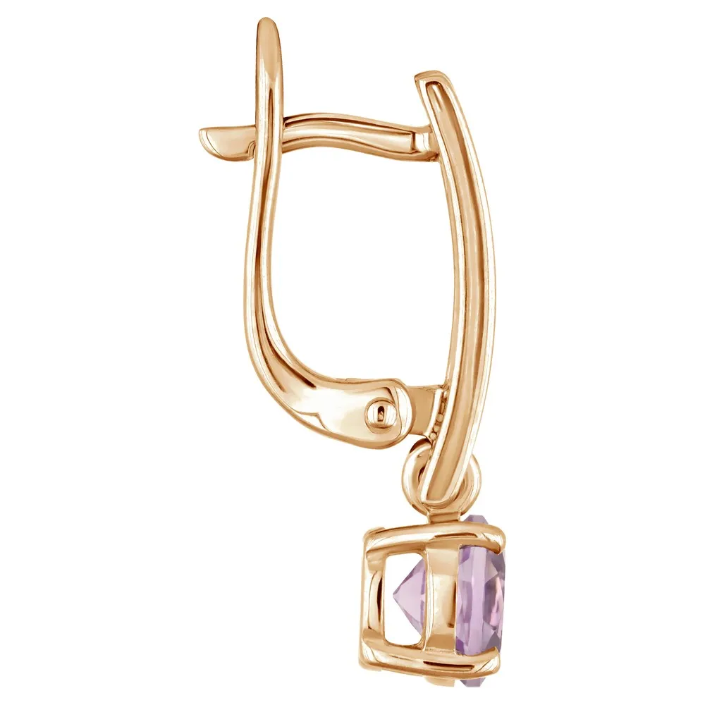 Серебряные серьги с натуральным аметистом - коллекция Классик (мини). Серебряные серьги 925 пробы с покрытием розовое золото. Цвет покрытия соответствует швейцарскому цветовому стандарту NIHS -4N и цвету розового золота 585 в России. На последней фотографии мы разместили сравнительную фотографию 3 цвета золотого покрытия. Помимо предания золотого цвета Вашему изделию, тонкий слой золота защищает от окисления. Для более стойкого эффекта золочения и долговечности покрытия мы дополнительно наносим подслой палладия (Pd). Средний вес изделия с камнями 3.55 гр. Месторождение: Аметист (Приполярный Урал, Россия). Аметист (Натуральный) круг 7 мм., средний вес: 1.32 карат. Все изделия собственного производства. Гарантия 12 месяцев.Арт. 8219.