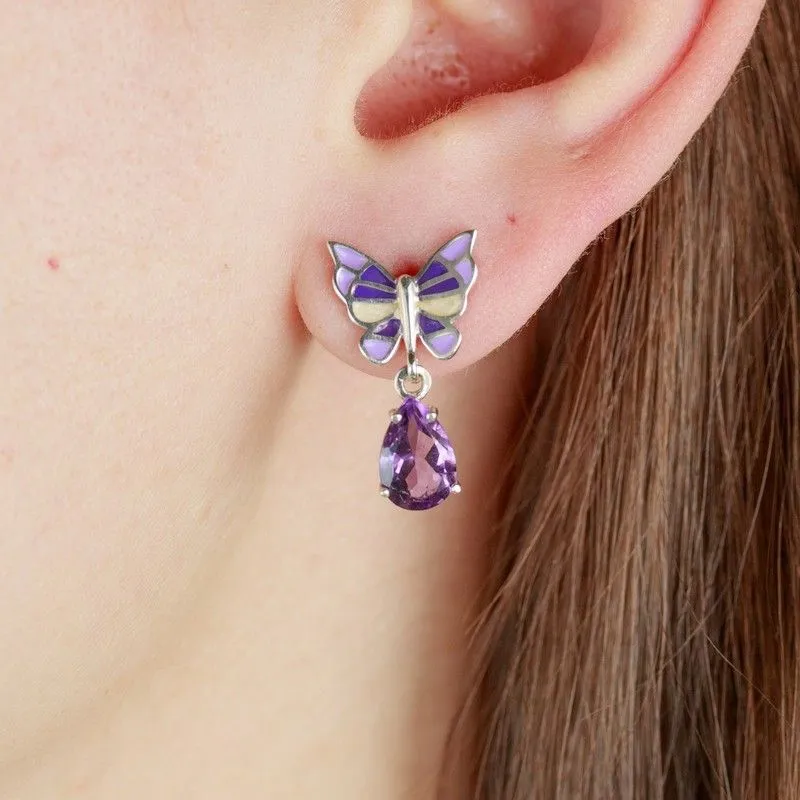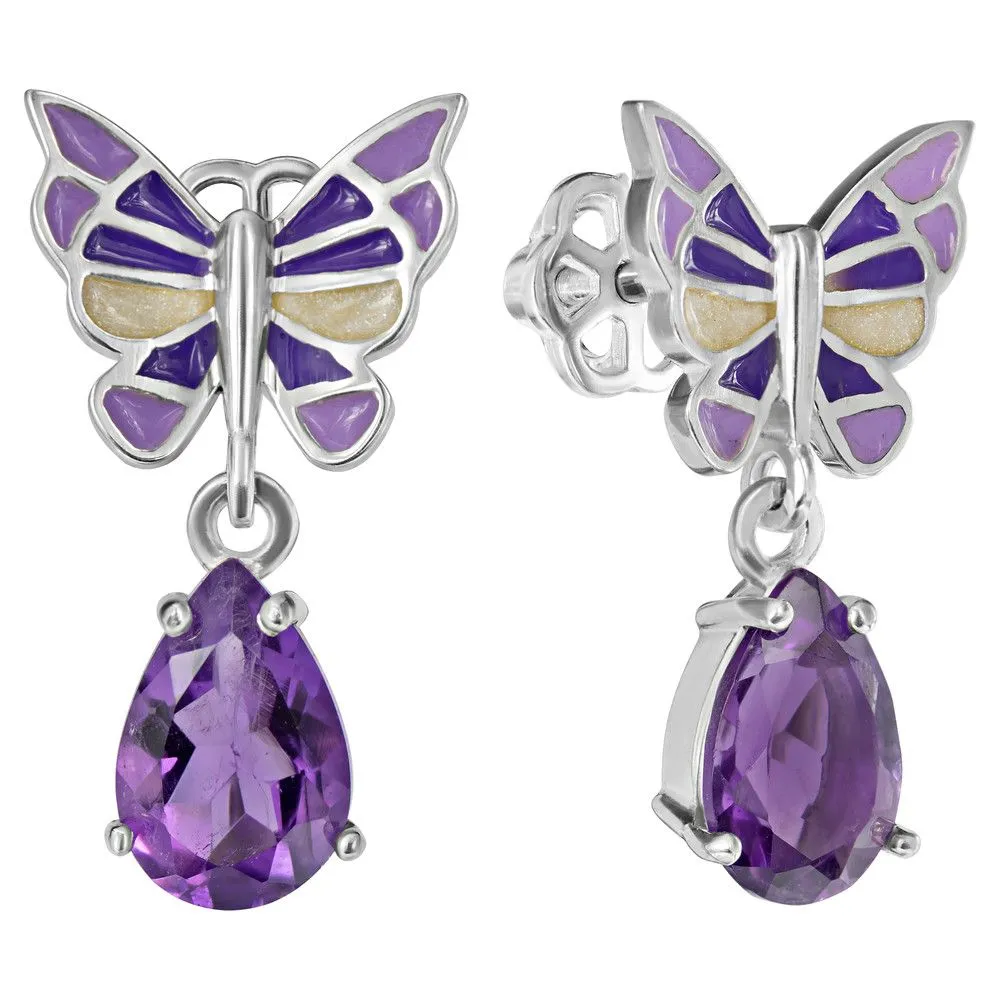 Серебряные серьги с натуральным аметистом и эмалью - коллекция Бабочка, без покрытия. Средний вес украшения с камнями 3.44 гр. Месторождение: Аметист (Приполярный Урал, Россия). Аметист (Натуральный) груша 6*9 мм., средний вес: 1.24 карат. Все изделия собственного производства и имеют гарантию 12 месяцев, к каждому изделию прилагается паспорт. Арт. 8439NP.