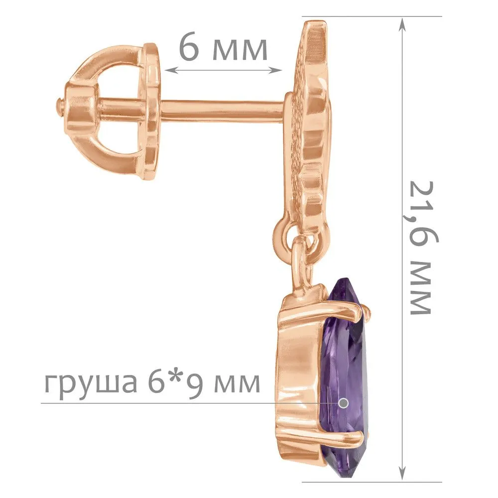 Серебряные серьги с натуральным аметистом и эмалью - коллекция Бабочка, покрытие Красное Золото. Средний вес украшения с камнями 3.44 гр. Месторождение: Аметист (Приполярный Урал, Россия). Аметист (Натуральный) груша 6*9 мм., средний вес: 1.24 карат. Все изделия собственного производства и имеют гарантию 12 месяцев, к каждому изделию прилагается паспорт. Арт. 8439RG.