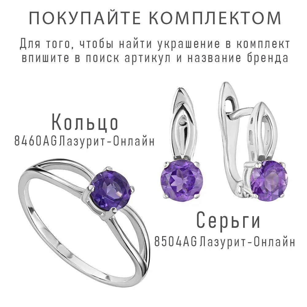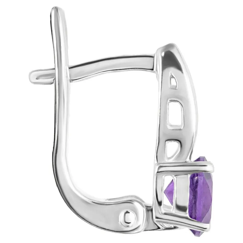 Серебряные серьги с натуральным аметистом (темным) - коллекция Мона / покрытие Чистое Серебро