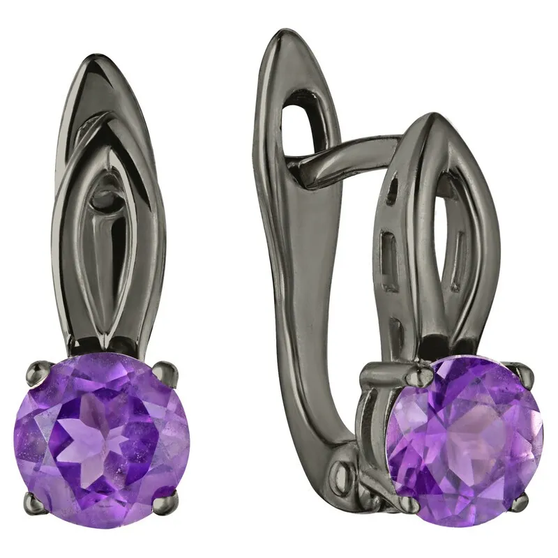Серебряные серьги с натуральным аметистом (темным) - коллекция Мона, покрытие Черный Родий.