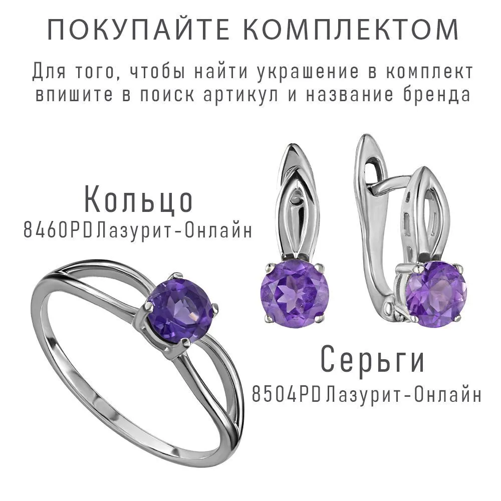Серебряные серьги с натуральным аметистом (темным) - коллекция Мона. Средний вес украшения с камнями 2.29 гр. Месторождение: Аметист (Приполярный Урал, Россия). Аметист (Натуральный) круг 5 мм., средний вес: 0.48 карат. Все изделия собственного производства и имеют гарантию 12 месяцев. Арт. 8504.