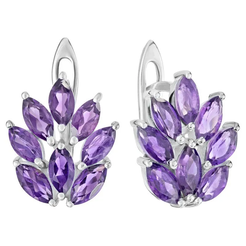 Серебряные серьги с натуральным аметистом (темным) - коллекция Искра. Средний вес украшения с камнями 4.21 гр. Месторождение: Аметист (Приполярный Урал, Россия). Аметист (Натуральный) маркиз 3*6 мм., средний вес: 0.23 карат. Все изделия собственного производства и имеют гарантию 12 месяцев. Арт. 8511.