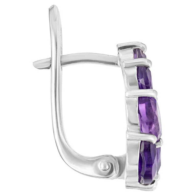 Серебряные серьги с натуральным аметистом (темным) - коллекция Искра / покрытие Белый Родий