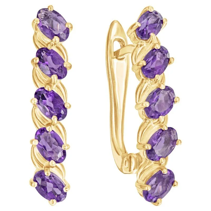 Серебряные серьги с натуральным аметистом (темным) - коллекция Колосок / покрытие Желтое Золото