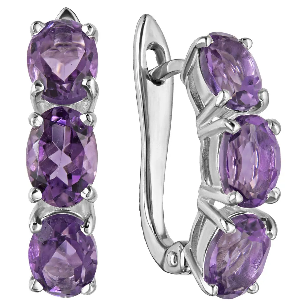 Серебряные серьги с натуральным аметистом (темным) - коллекция Муза. Средний вес украшения с камнями 4.09 гр. Месторождение: Аметист (Приполярный Урал, Россия). Аметист (Натуральный) овал 5*7 мм., средний вес: 0.72 карат. Все изделия собственного производства и имеют гарантию 12 месяцев. Арт. 8519.