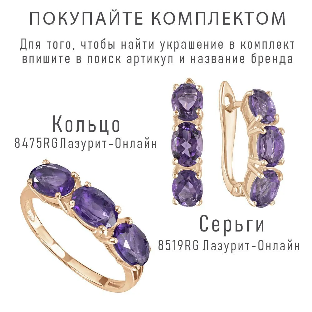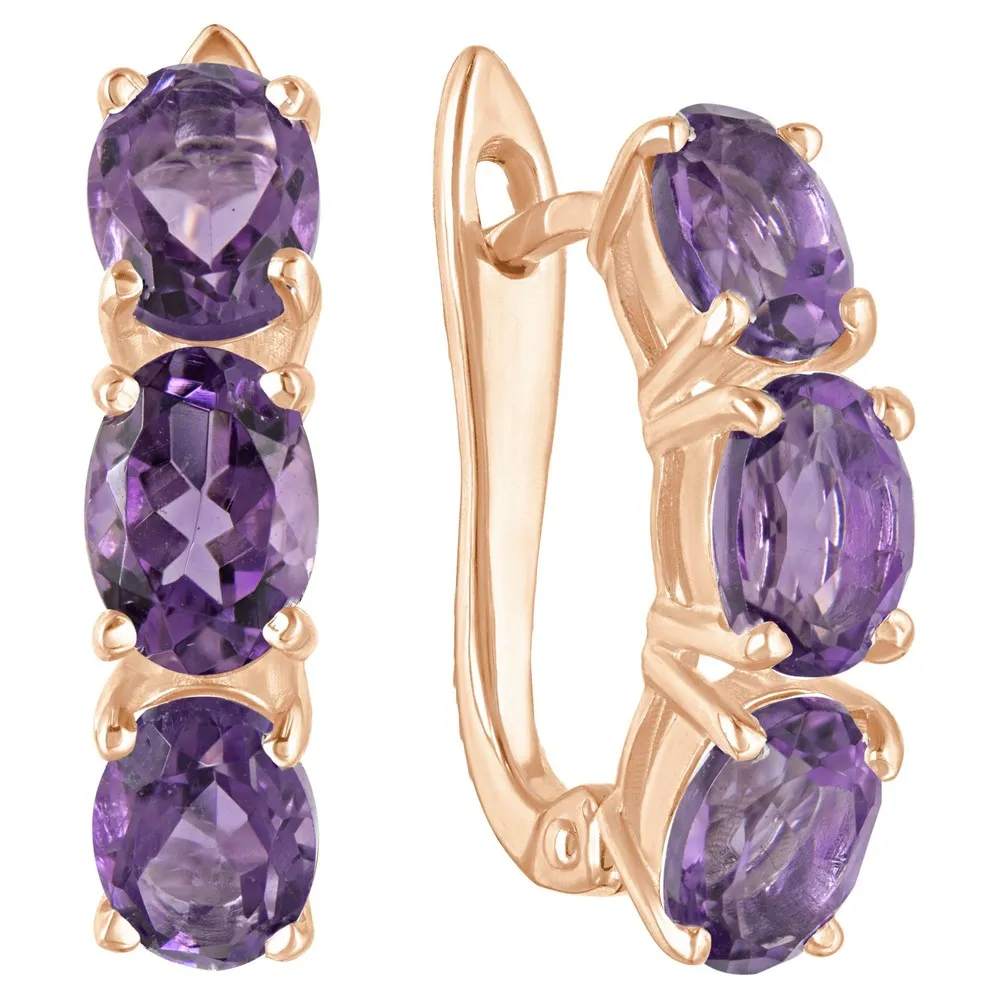 Серебряные серьги с натуральным аметистом (темным) - коллекция Муза / покрытие Красное Золото