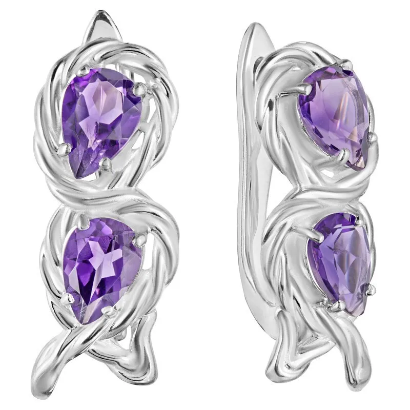 Серебряные серьги с натуральным аметистом (темным) - коллекция Ривьера. Средний вес украшения с камнями 4.31 гр. Месторождение: Аметист (Приполярный Урал, Россия). Аметист (Натуральный) груша 5*7 мм., средний вес: 0.65 карат. Все изделия собственного производства и имеют гарантию 12 месяцев. Арт. 8527.
