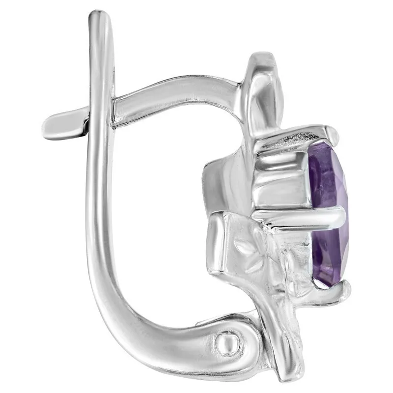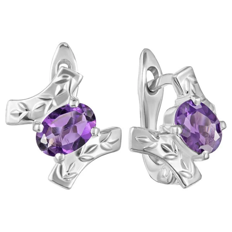 Серебряные серьги с натуральным аметистом (темным) - коллекция Тея / покрытие Палладий