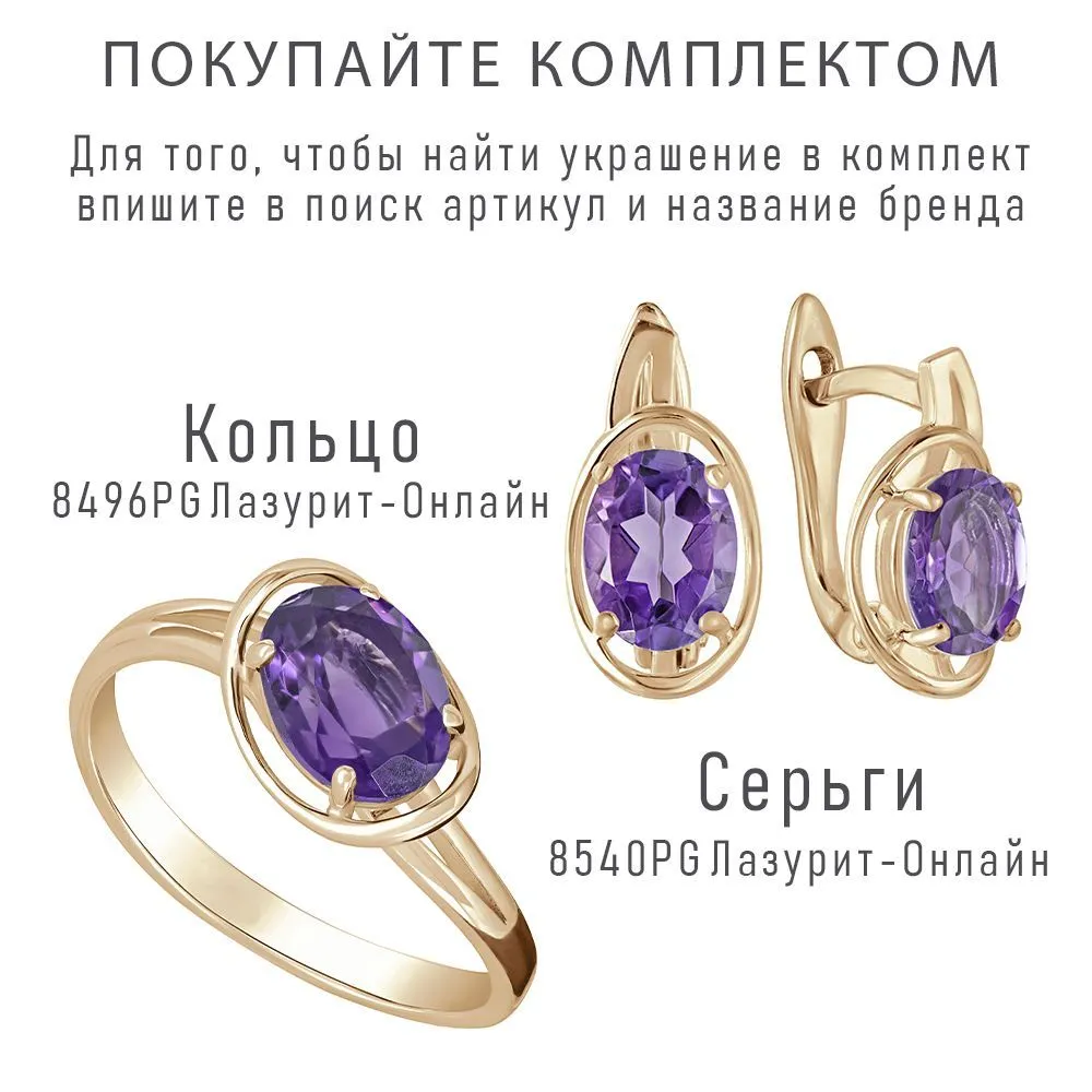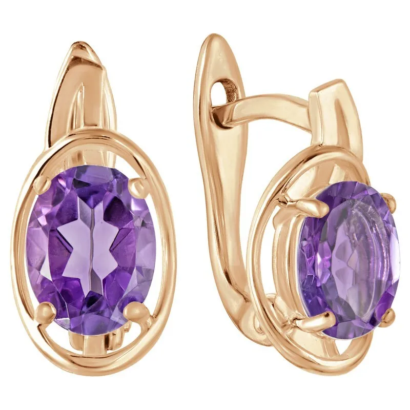 Серебряные серьги с натуральным аметистом (темным) - коллекция Фрейя / покрытие Розовое Золото