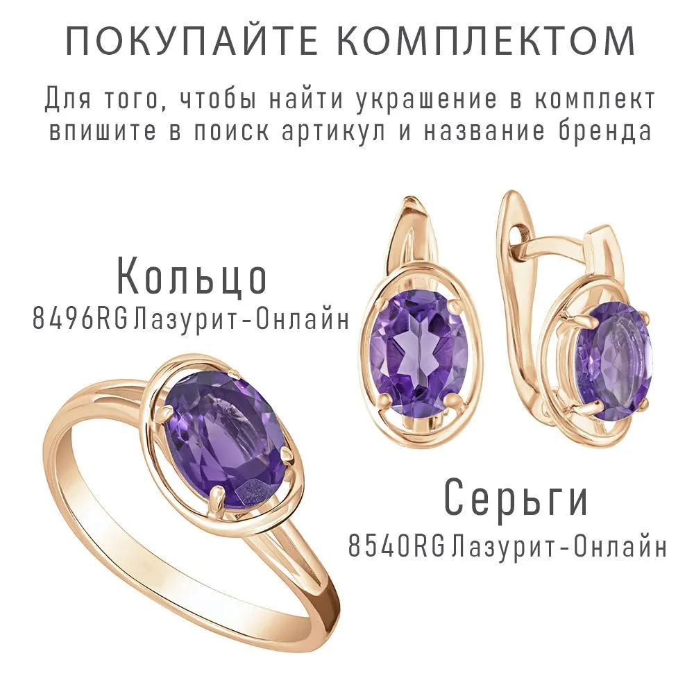 Серебряные серьги с натуральным аметистом (темным) - коллекция Фрейя / покрытие Красное Золото