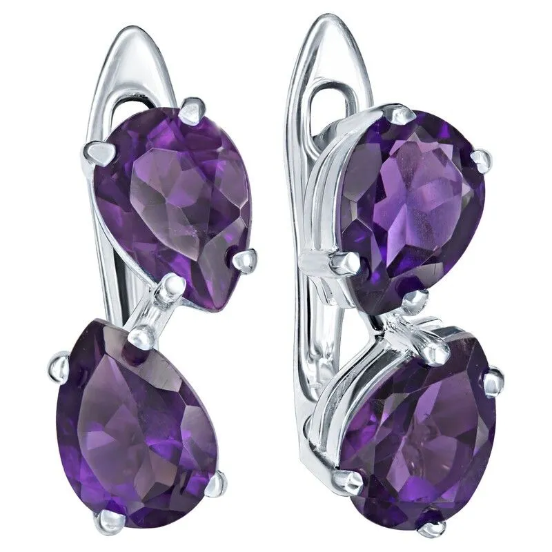 Серебряные серьги с натуральным аметистом (темный) - коллекция Дуэт / покрытие Чистое Серебро.Средний вес украшения с камнями 2.95 гр.Месторождение(я): Аметист (Приполярный Урал, Россия).Ювелирные вставки:Аметист (Натуральный) груша 5*7 мм., средний вес: 0.65 карат.Все изделия собственного производства и имеют гарантию 12 месяцев. Арт. 8674AG .