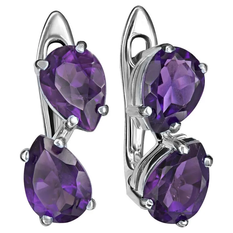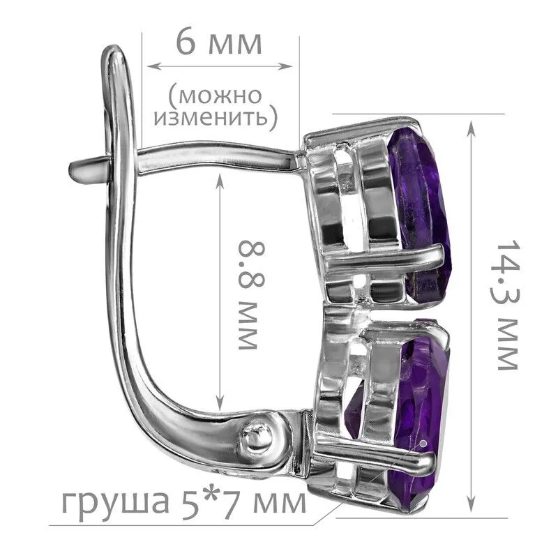 Серебряные серьги с натуральным аметистом (темный) - коллекция Дуэт / покрытие Палладий.Средний вес украшения с камнями 2.88 гр.Месторождение(я): Аметист (Приполярный Урал, Россия).Ювелирные вставки:Аметист (Натуральный) груша 5*7 мм., средний вес: 0.65 карат.Все изделия собственного производства и имеют гарантию 12 месяцев. Арт. 8674PD .