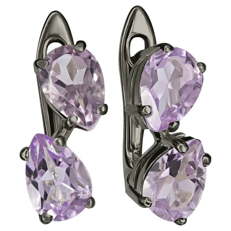 Серебряные серьги с натуральным аметистом (светлый) - коллекция Дуэт / покрытие Черный Родий.Средний вес украшения с камнями 2.91 гр.Месторождение(я): Аметист (Приполярный Урал, Россия).Ювелирные вставки:Аметист (Натуральный) груша 5*7 мм., средний вес: 0.65 карат.Все изделия собственного производства и имеют гарантию 12 месяцев. Арт. 8676BR .
