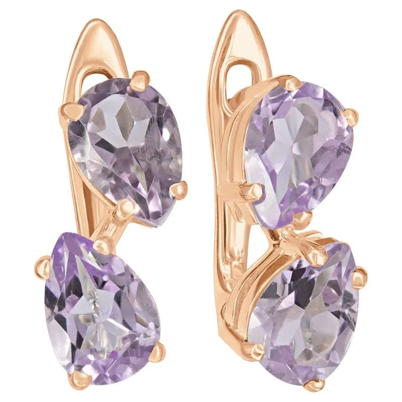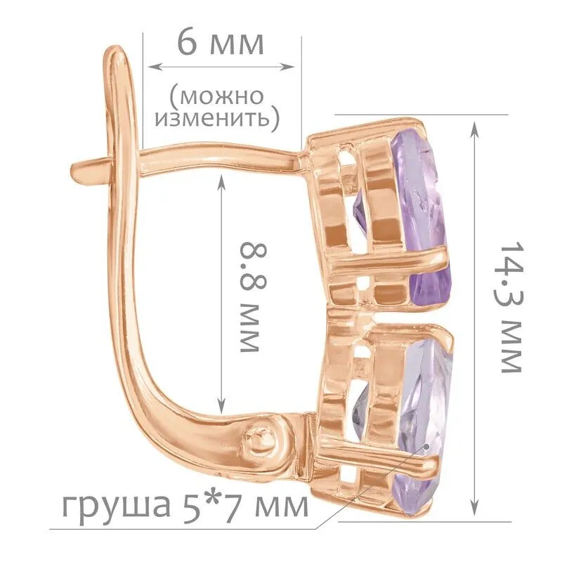 Серебряные серьги с натуральным аметистом (светлый) - коллекция Дуэт / покрытие Красное Золото.Средний вес украшения с камнями 2.82 гр.Месторождение(я): Аметист (Приполярный Урал, Россия).Ювелирные вставки:Аметист (Натуральный) груша 5*7 мм., средний вес: 0.65 карат.Все изделия собственного производства и имеют гарантию 12 месяцев. Арт. 8676RG .
