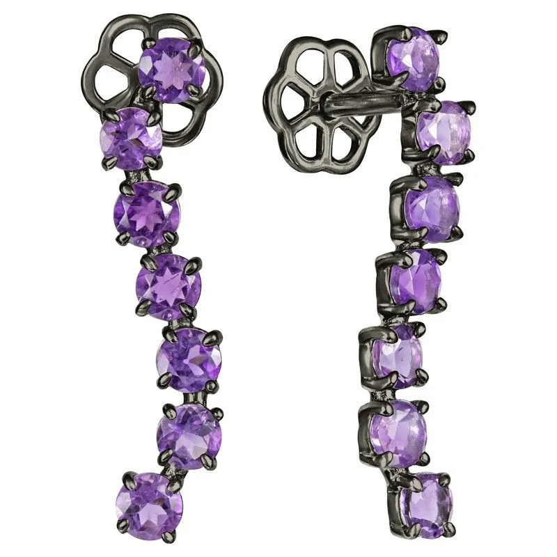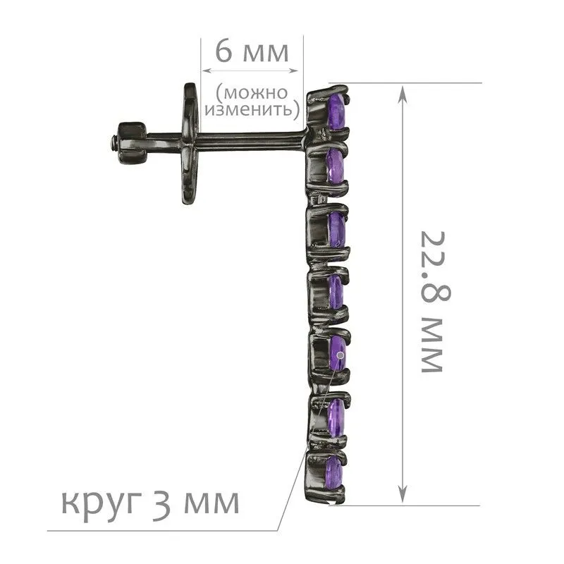 Серебряные серьги с натуральным аметистом (темный) - коллекция Волна / покрытие Черный Родий.Средний вес украшения с камнями 1.81 гр.Месторождение: Аметист (Приполярный Урал, Россия)Ювелирные вставки:Аметист (Натуральный) круг 3 мм., средний вес: 0.63 карат.Все изделия собственного производства и имеют гарантию 12 месяцев. Арт. 8736BR .