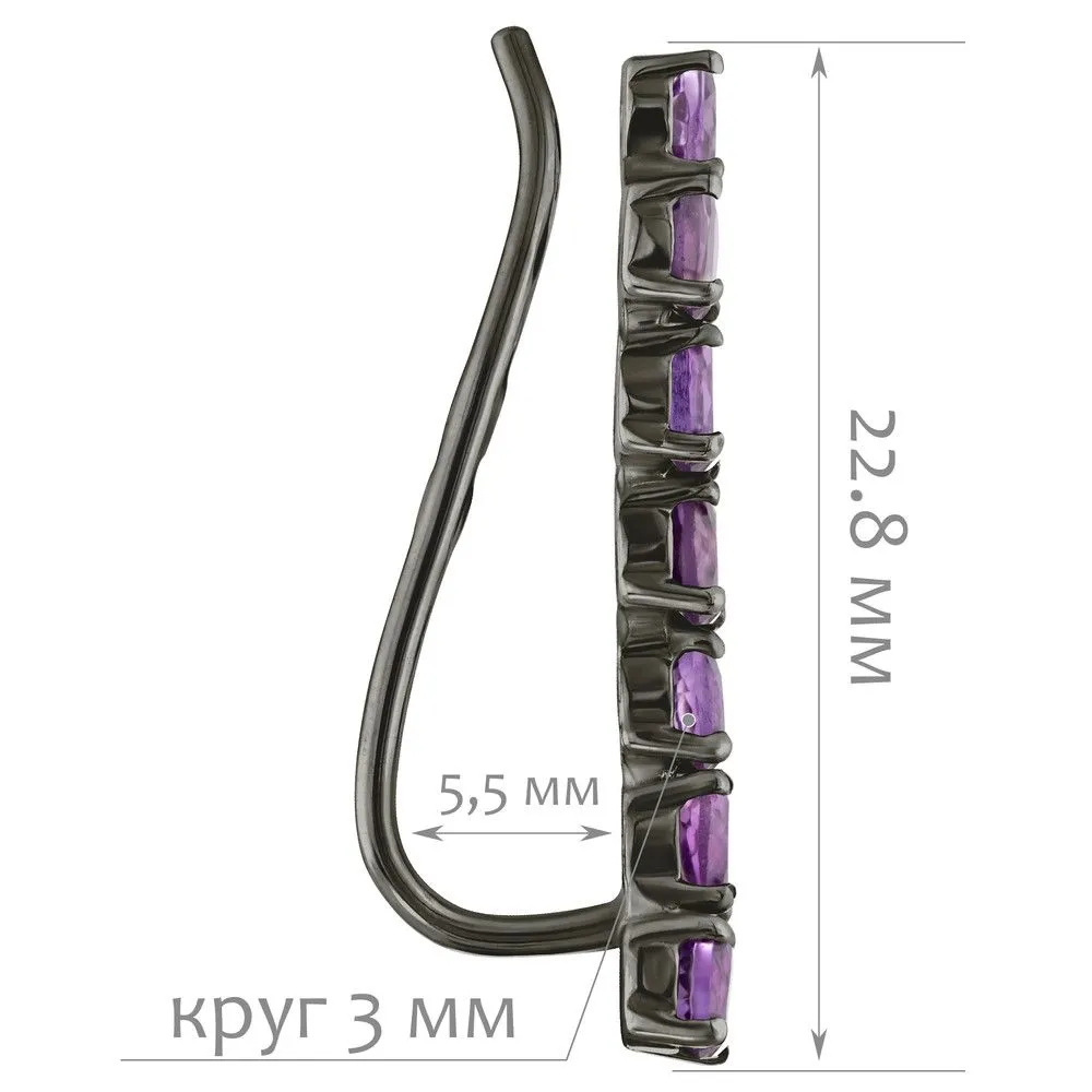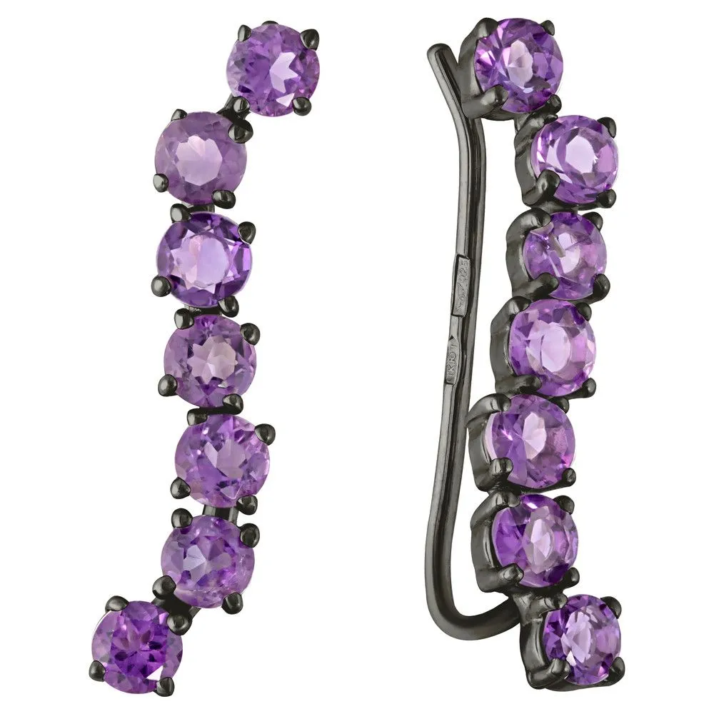 Серебряные серьги каффы с натуральным аметистом (темный) - коллекция Волна / покрытие Черный Родий.Средний вес украшения с камнями 1.83 гр.Месторождение: Аметист (Приполярный Урал, Россия)Ювелирные вставки:Аметист (Натуральный) круг 3 мм., средний вес: 0.48 карат.Все изделия собственного производства и имеют гарантию 12 месяцев. Арт. 8748BR