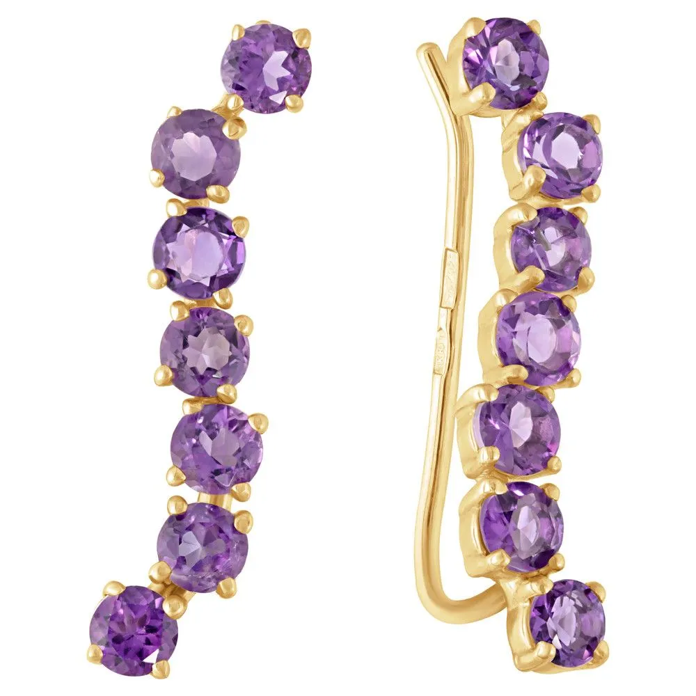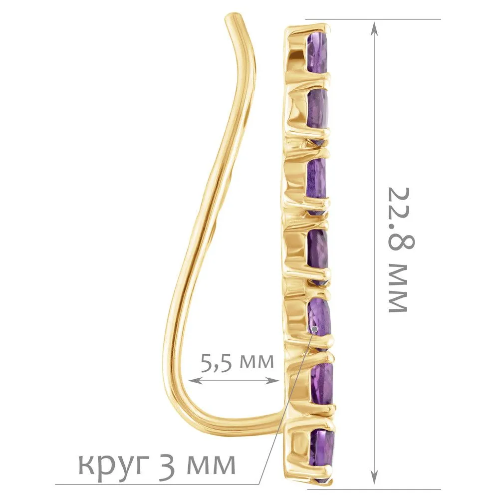Серебряные серьги каффы с натуральным аметистом (темный) - коллекция Волна / покрытие Желтое Золото.Средний вес украшения с камнями 1.78 гр.Месторождение: Аметист (Приполярный Урал, Россия)Ювелирные вставки:Аметист (Натуральный) круг 3 мм., средний вес: 0.91 карат.Все изделия собственного производства и имеют гарантию 12 месяцев. Арт. 8748YG .