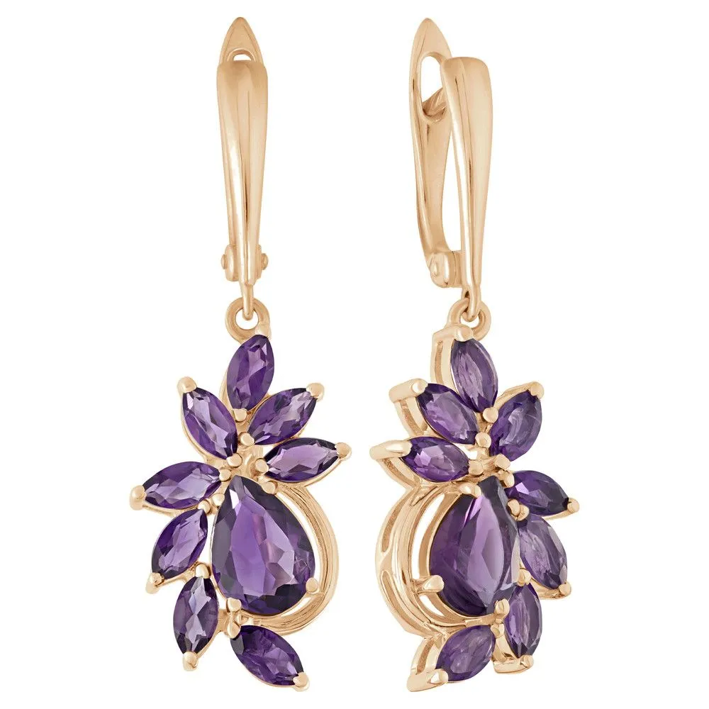 Серебряные серьги с натуральным аметистом (темным) - коллекция Элегия / покрытие Розовое Золото. Средний вес украшения с камнями 7.47 гр. Месторождение: Аметист (Приполярный Урал, Россия) Ювелирные вставки: Аметист (Натуральный) груша 7*10 мм., средний вес: 1.7 карат. Аметист (Натуральный) маркиз 3*6 мм., средний вес: 0.26 карат. Все изделия собственного производства и имеют гарантию 12 месяцев. Арт. 8783PG .