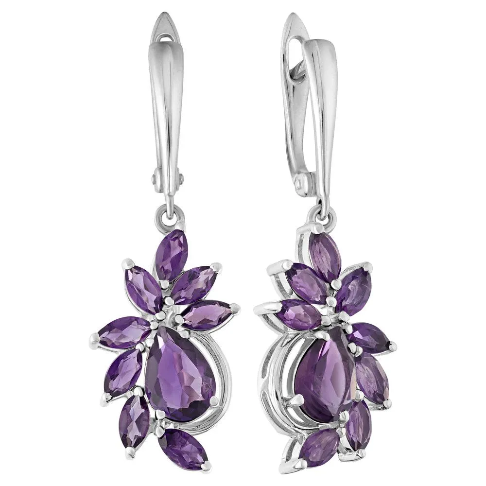 Серебряные серьги с натуральным аметистом (темным) - коллекция Элегия / покрытие Белый Родий. Средний вес украшения с камнями 7.47 гр. Месторождение: Аметист (Приполярный Урал, Россия) Ювелирные вставки: Аметист (Натуральный) груша 7*10 мм., средний вес: 1.7 карат. Аметист (Натуральный) маркиз 3*6 мм., средний вес: 0.26 карат. Все изделия собственного производства и имеют гарантию 12 месяцев. Арт. 8783WR .