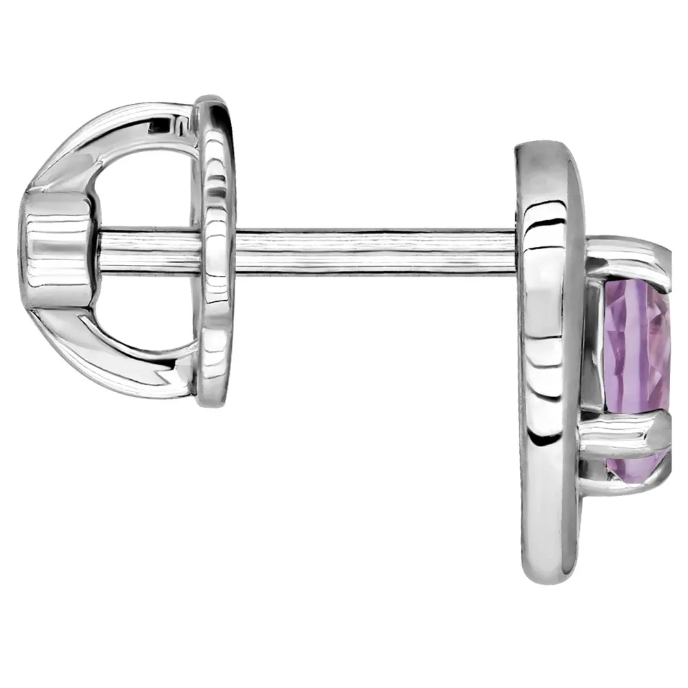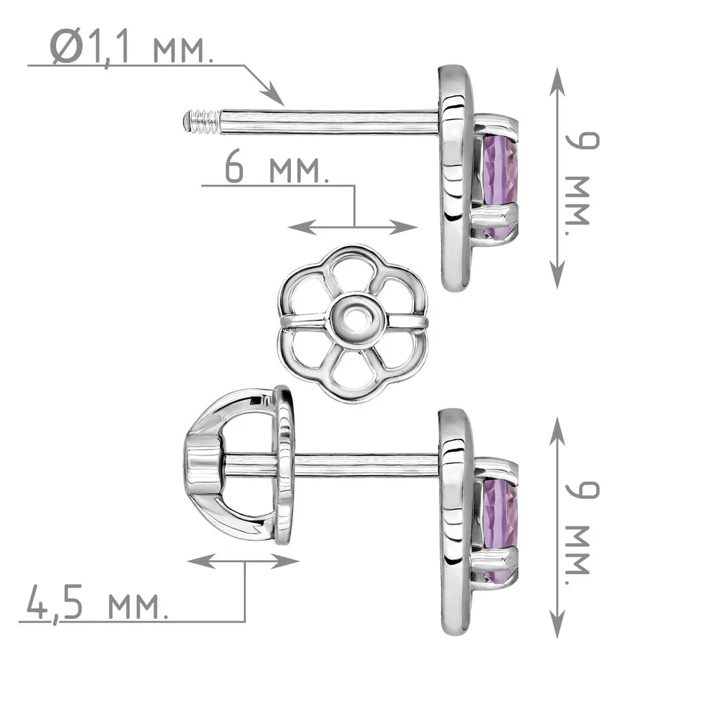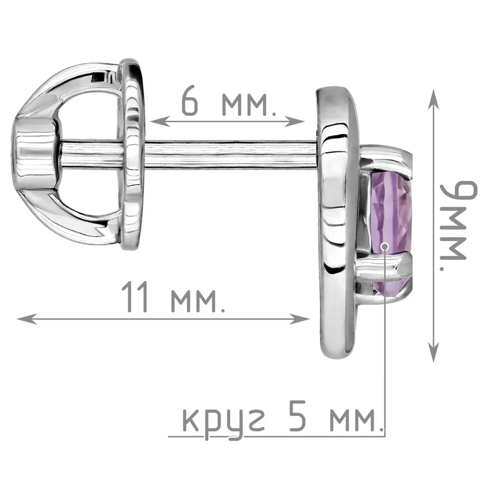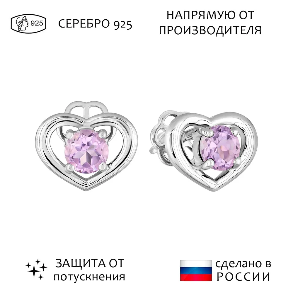 Серебряные серьги гвоздики (пусеты) с натуральным аметистом (светлым) - Сердце / Без покрытия.