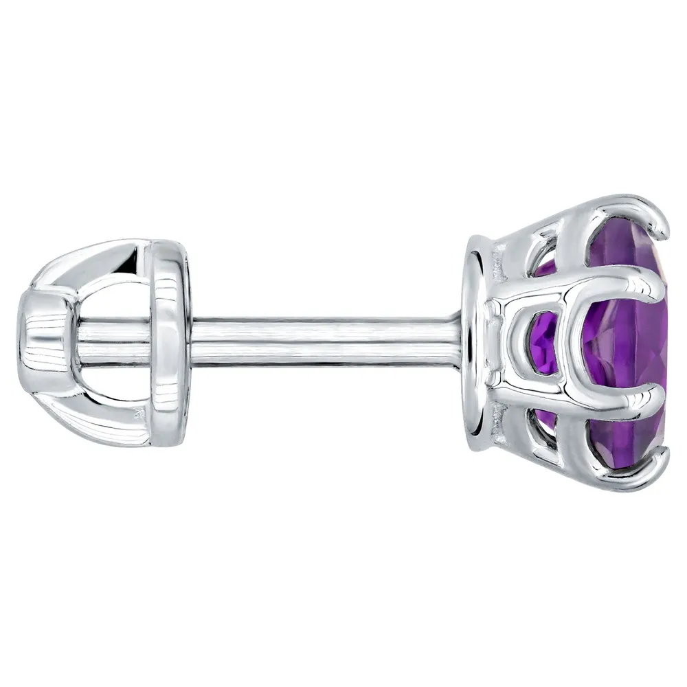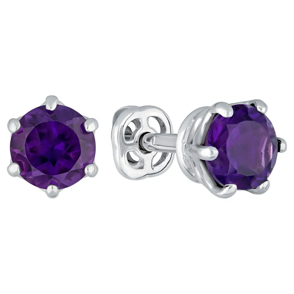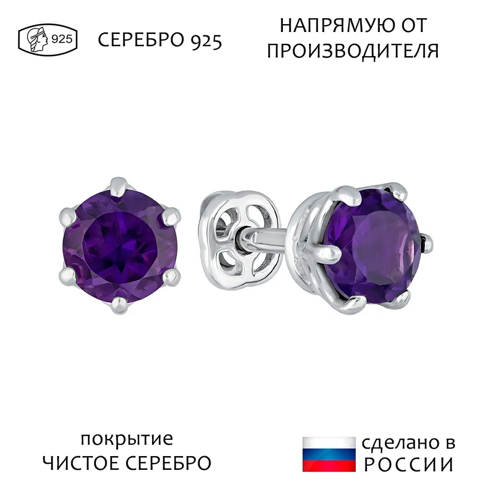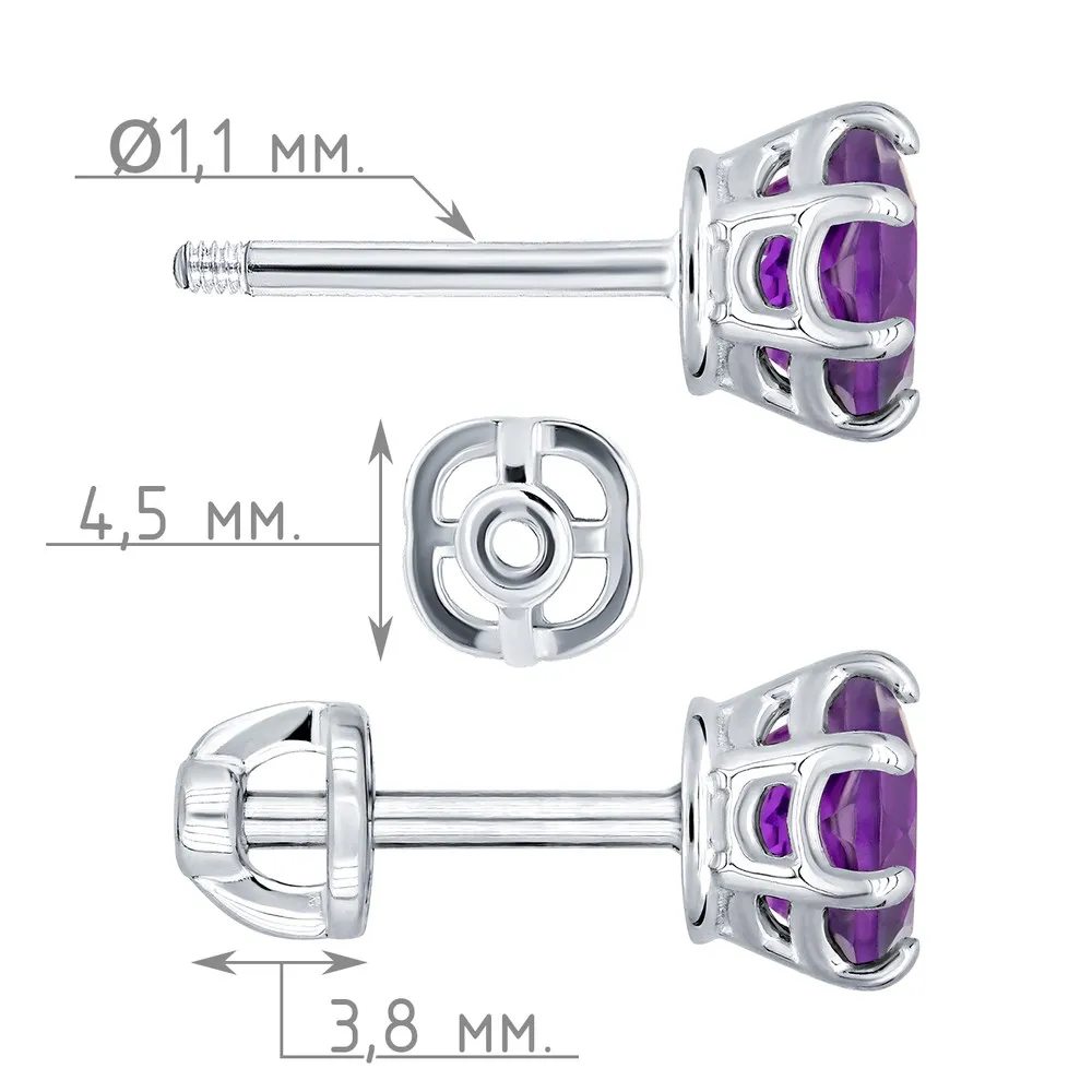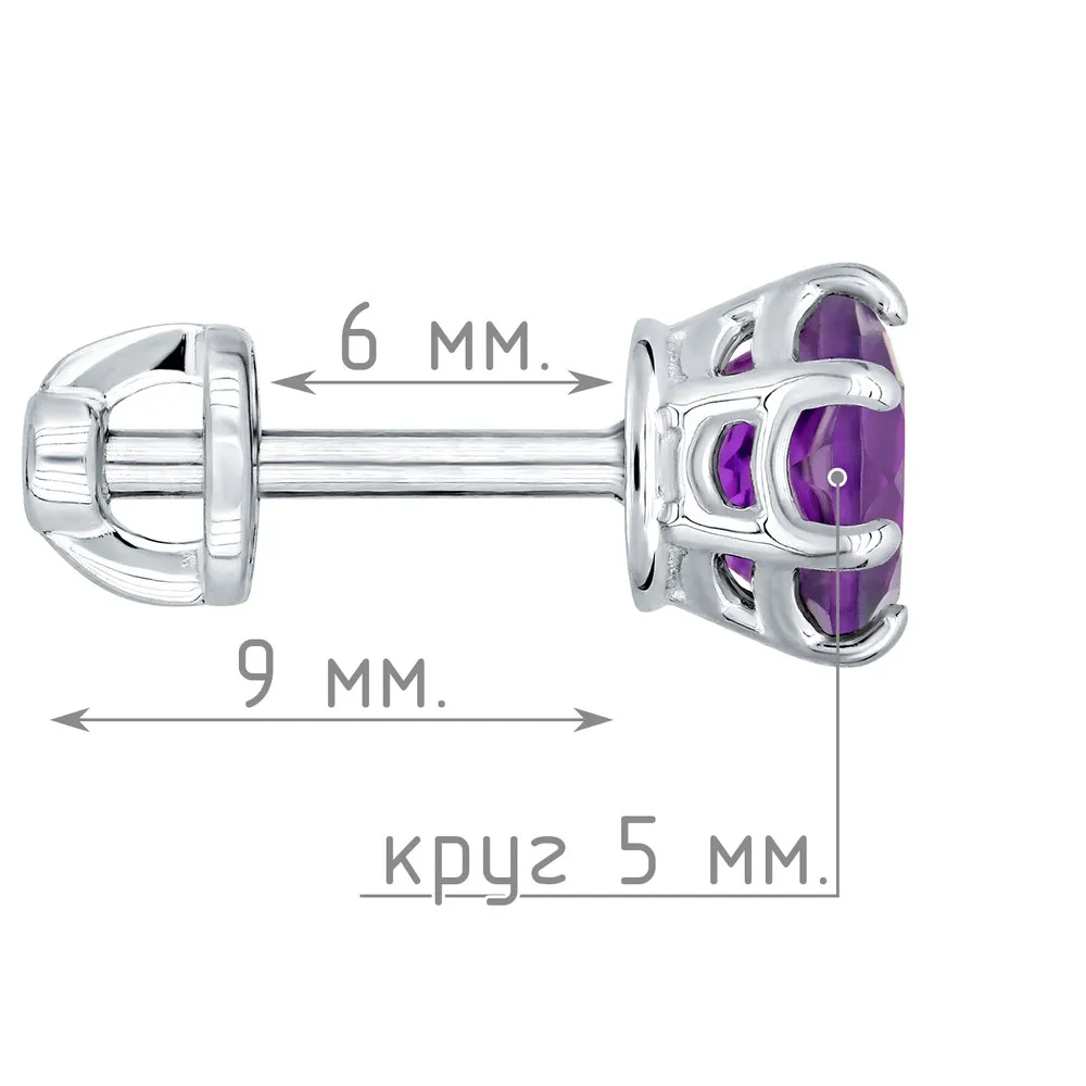 Серебряные серьги гвоздики (пусеты) с натуральным аметистом (темным) 5 мм. / Чистое Серебро.
